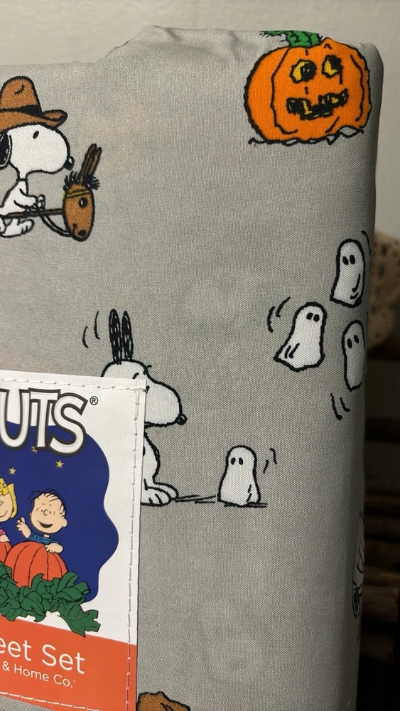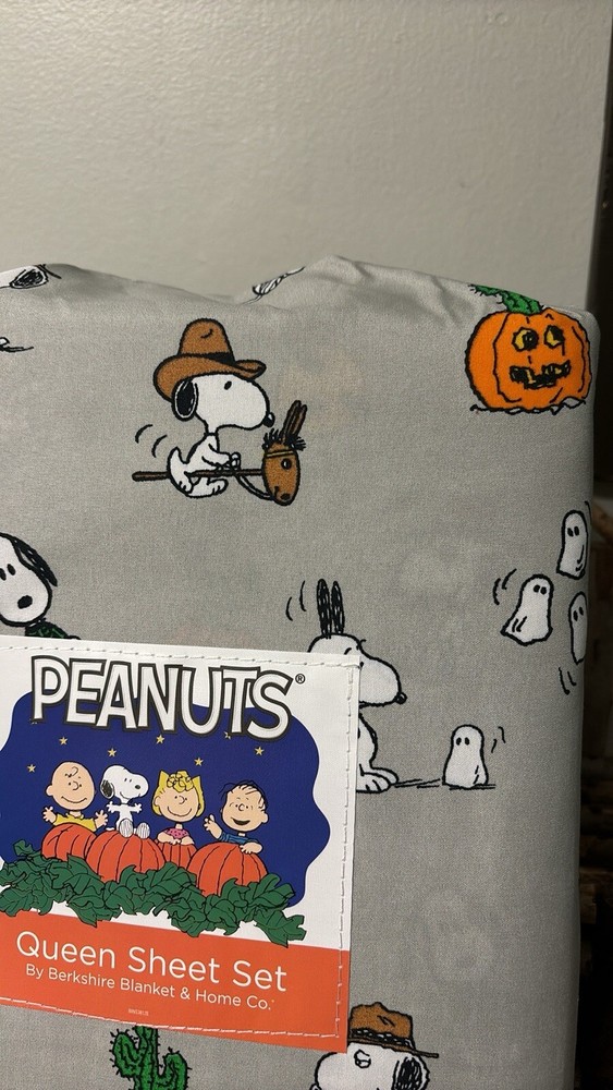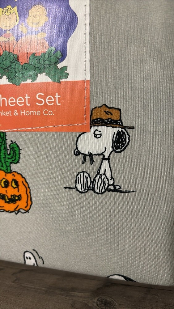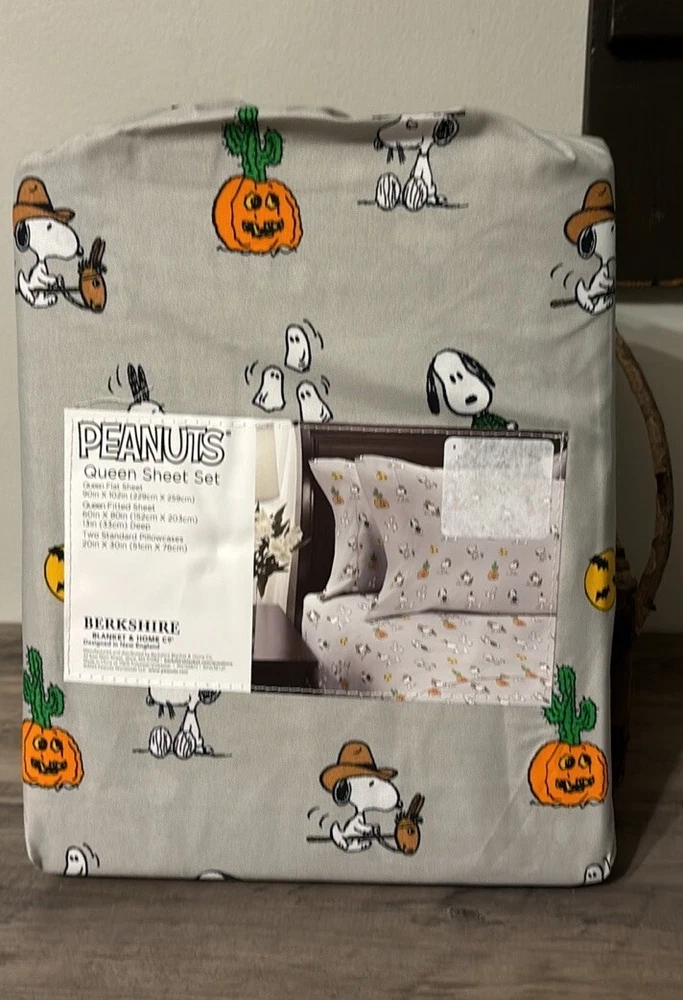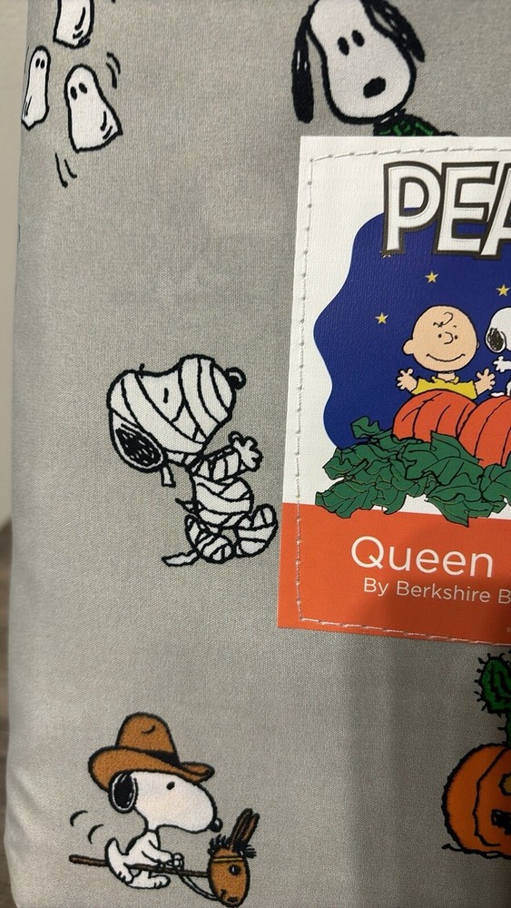 NEW PEANUTS SNOOPY COWBOY STICK PONY CACTUS JACK O LANTERN HALLOWEEN QUEEN SHEETS GRAY 100% POLYESTER SOOOO CUTE! SNOOPY IN A MUMMY COSTUME SNOOPY WITH A MUSTACHE SNOOPY RIDING A STICK PONY CACTUS JACK O LANTERNS GHOSTS