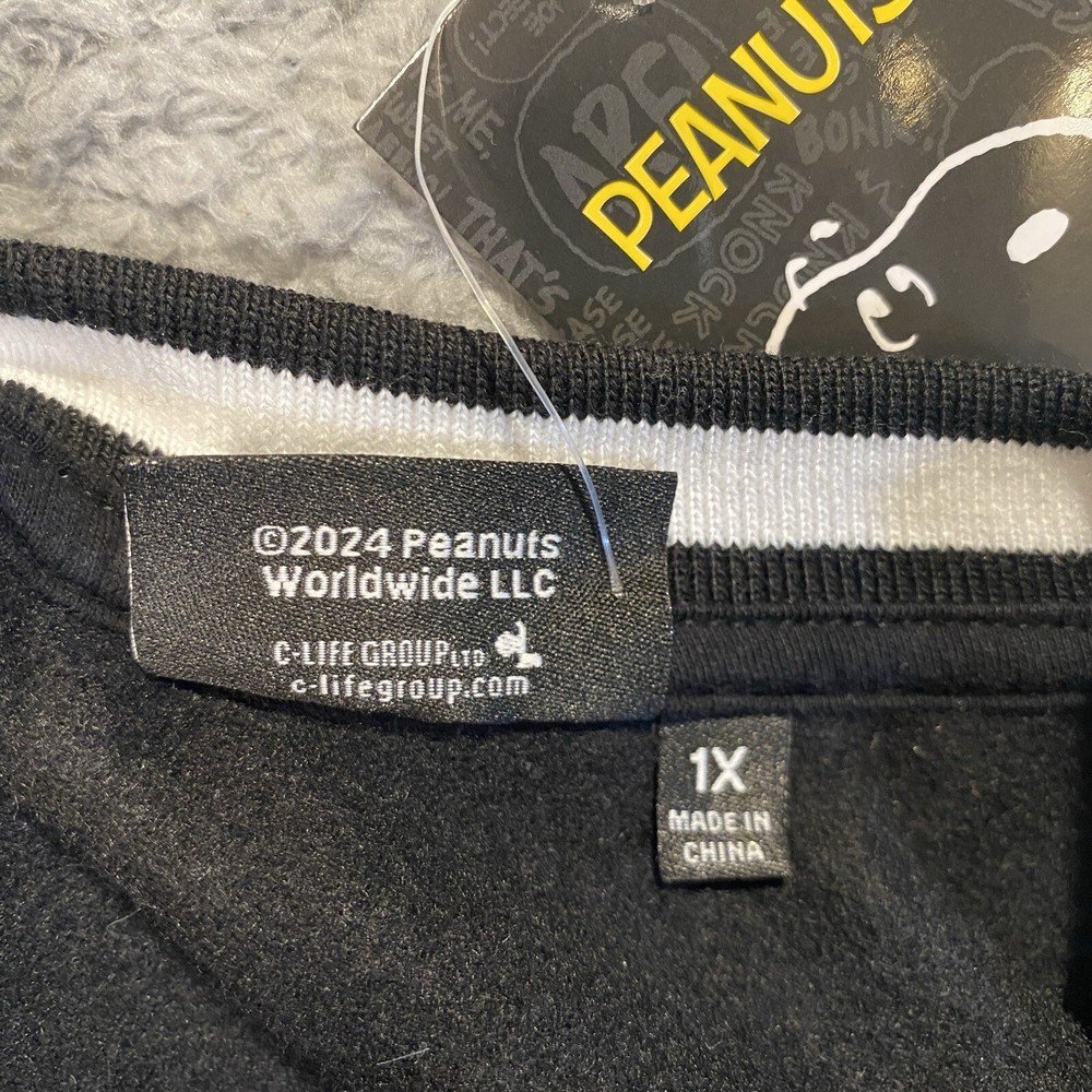 Peanuts Snoopy Joe Cool Sweatshirt Womens 1X Black Pullover Crewneck Embroidered New with tags. See photos for details. ACTUAL MEASUREMENTS SEEM SMALLER THAN 1X. SEE BELOW. Shoulder seam to seam: 16" Armpit to armpit: 23" Sleeve length: 24" Cuff opening: 4" Bottom collar down back: 26" Ships by USPS Ground Advantage.