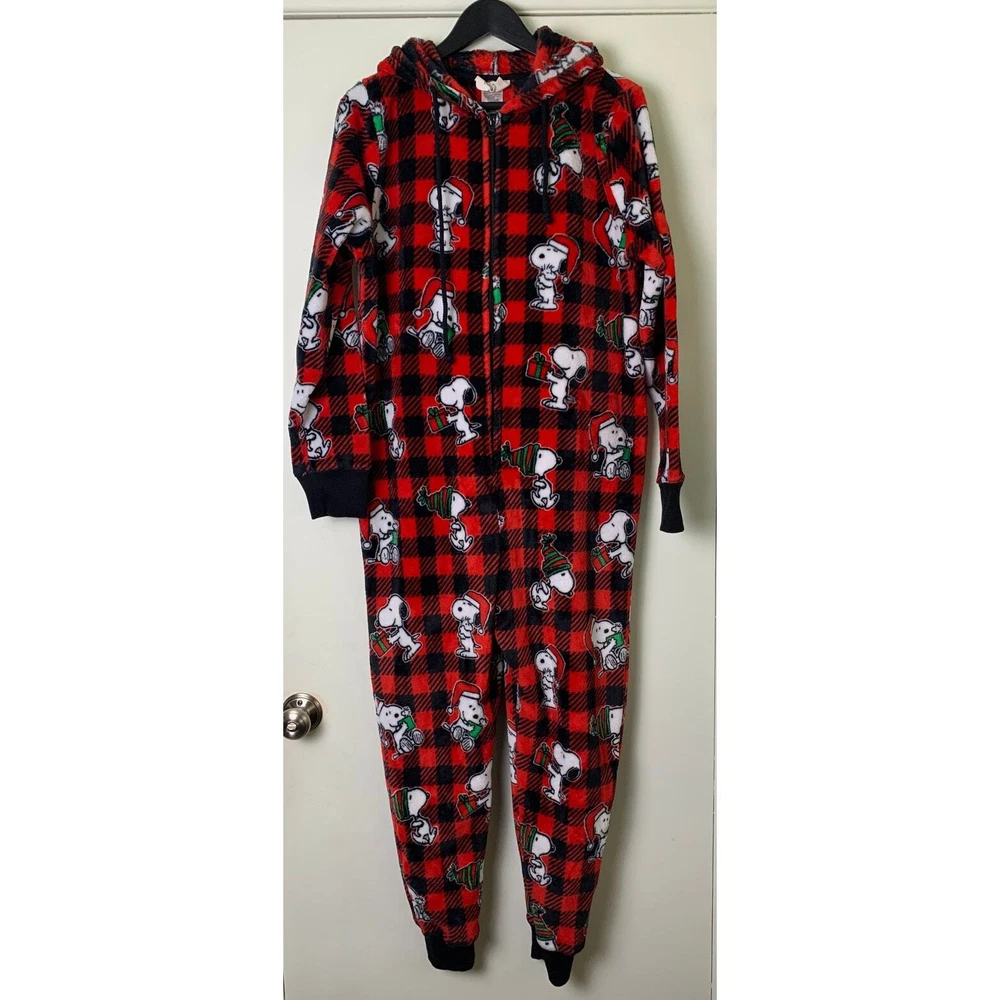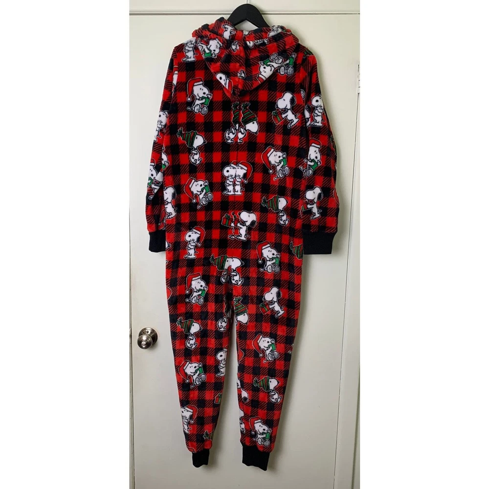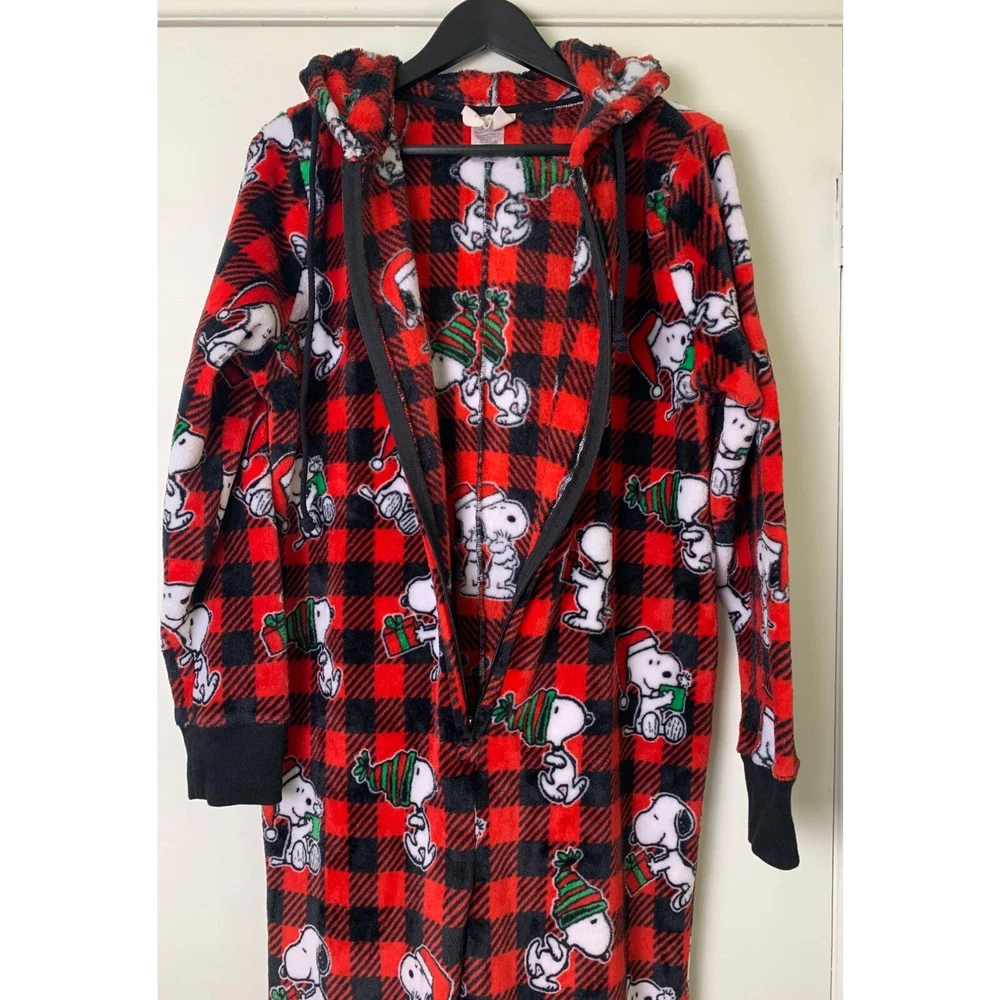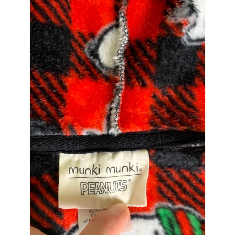 Snoopy Munki Munki Peanuts Buffalo plaid Hooded Pajamas One Piece L