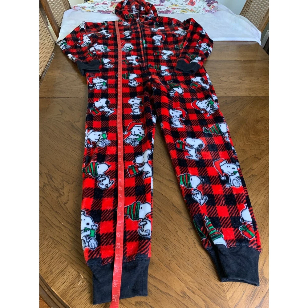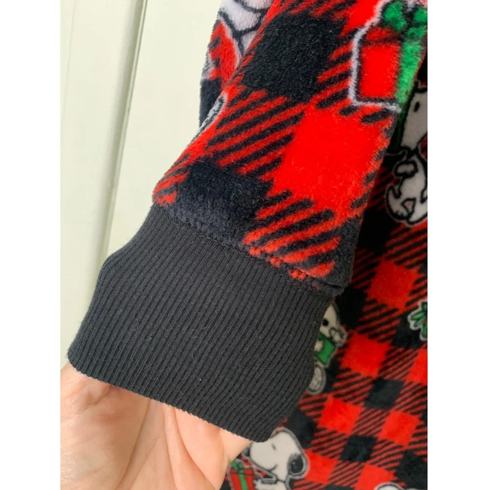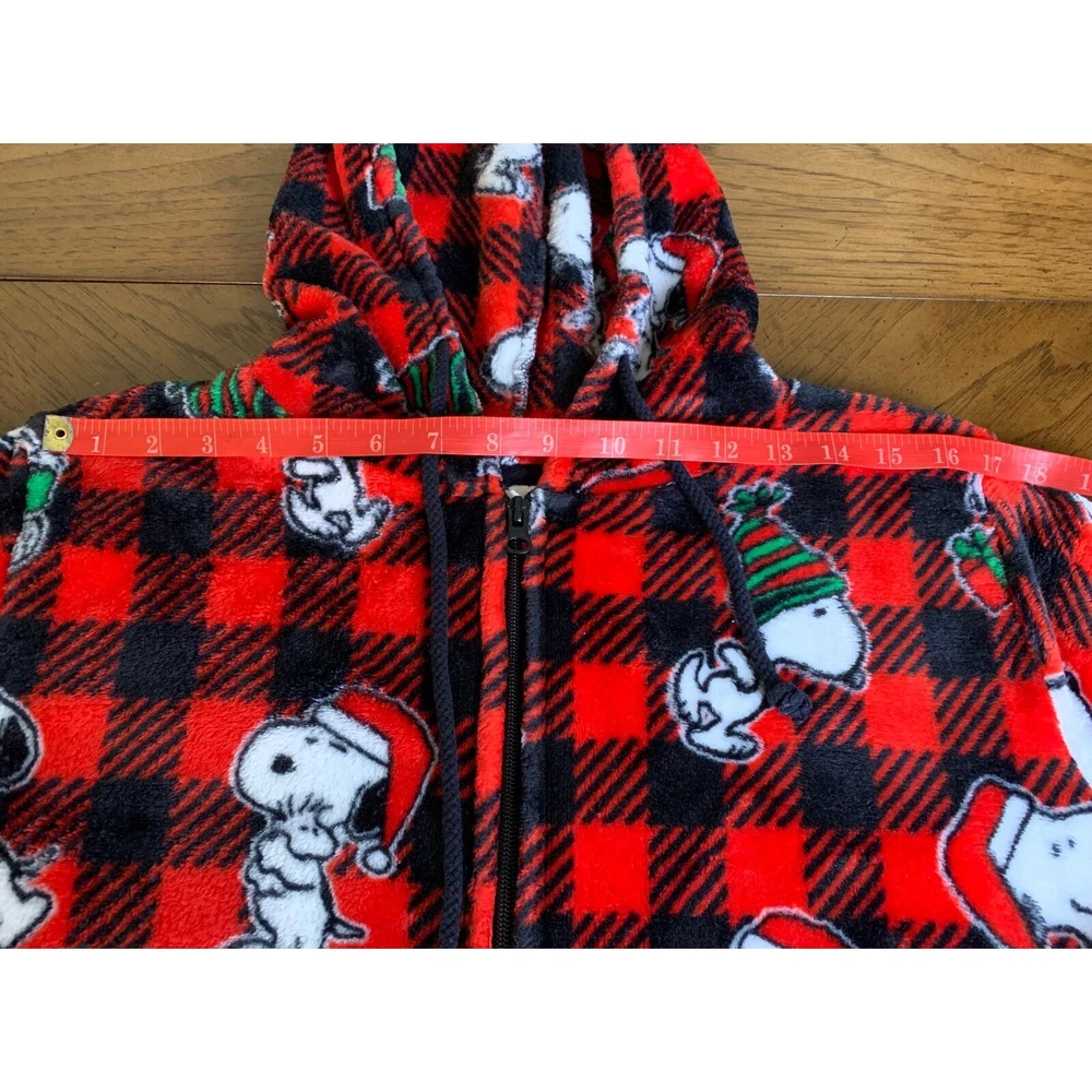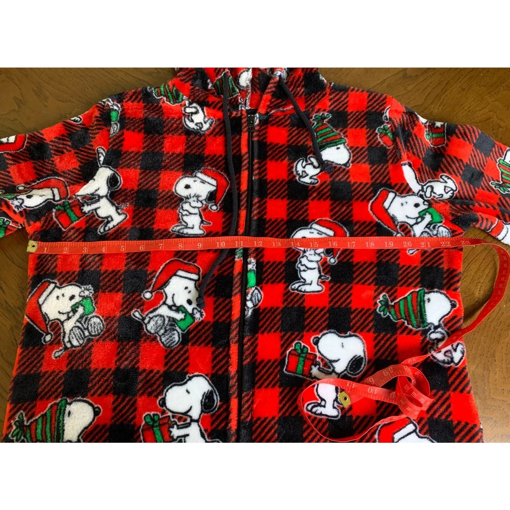 Snoopy Munki Munki Peanuts Buffalo plaid Hooded Pajamas One Piece L