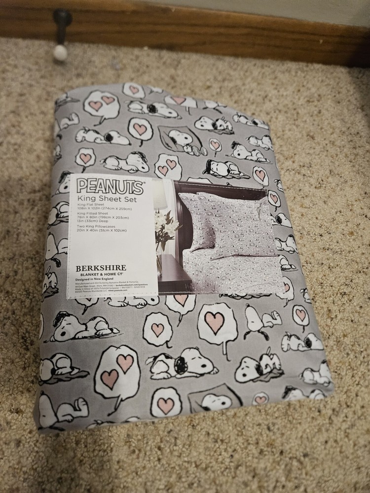 NEW Snoopy Peanuts Sheet Set King 4 Piece Berkshire Gray Hearts Valentine’s Day Condition is listed in the condition description. Feel free to look at the pictures for better understanding of the condition. Thank you for considering this item.