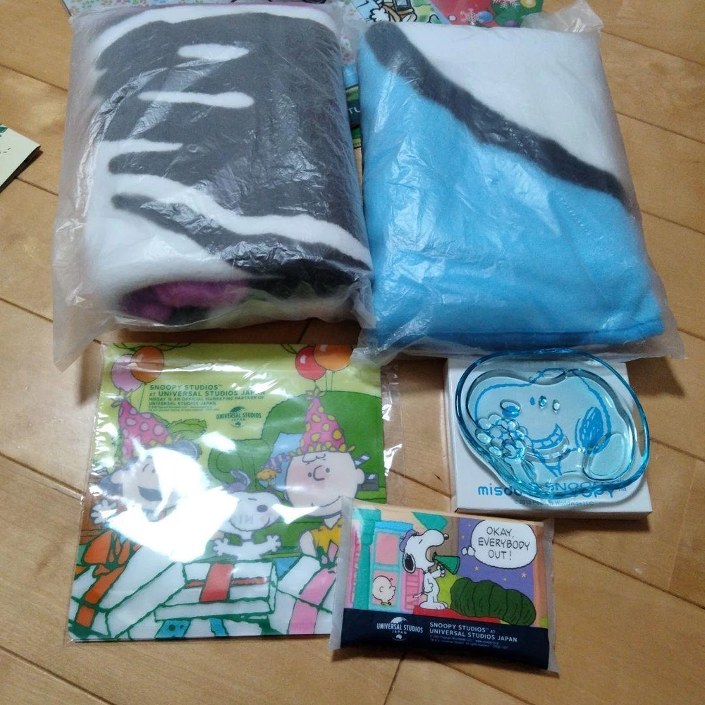 Snoopy Plush Blanket Clear File Pouch Lunch Box Zipper Bag Calendar Figure Set