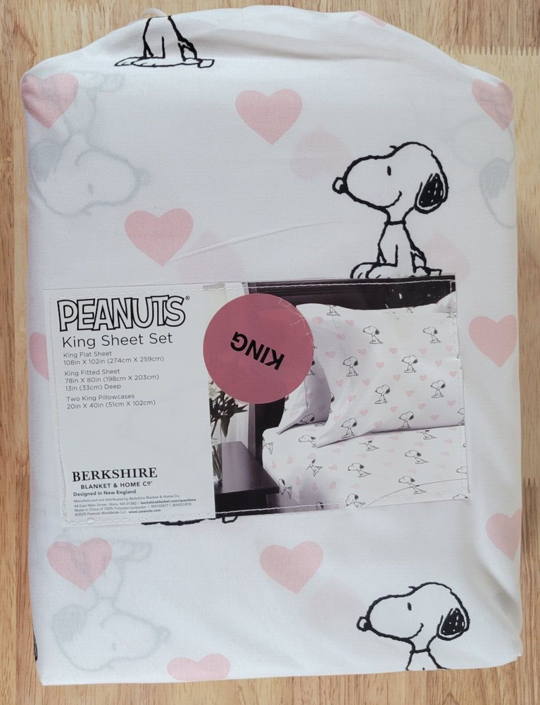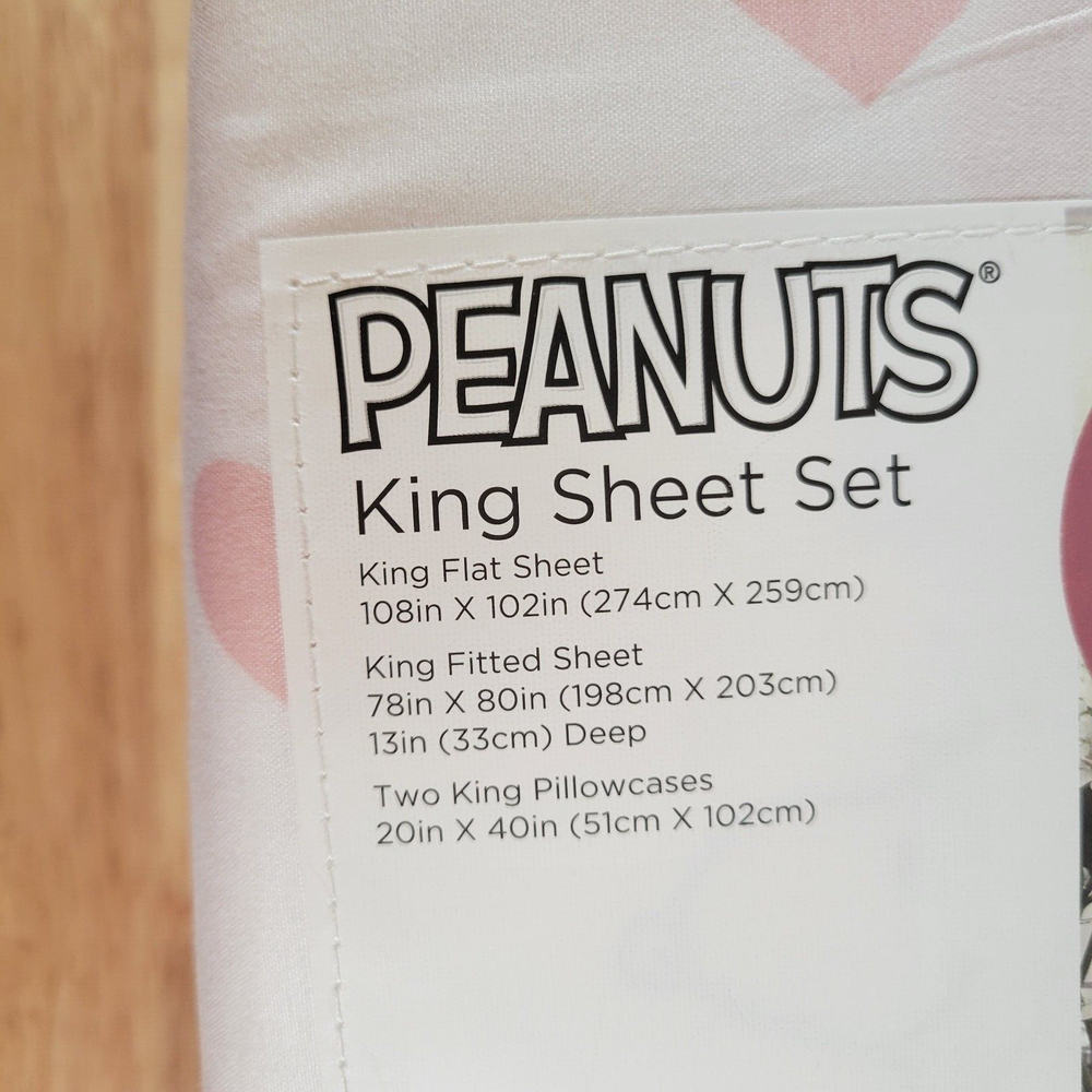 Room:BedroomMaterial:PolyesterColor:WhitePattern:HeartsCharacter Family:PeanutsBrand:BerkshireCharacter:SnoopySize:KingCare Instructions:Machine WashType:Sheet Set