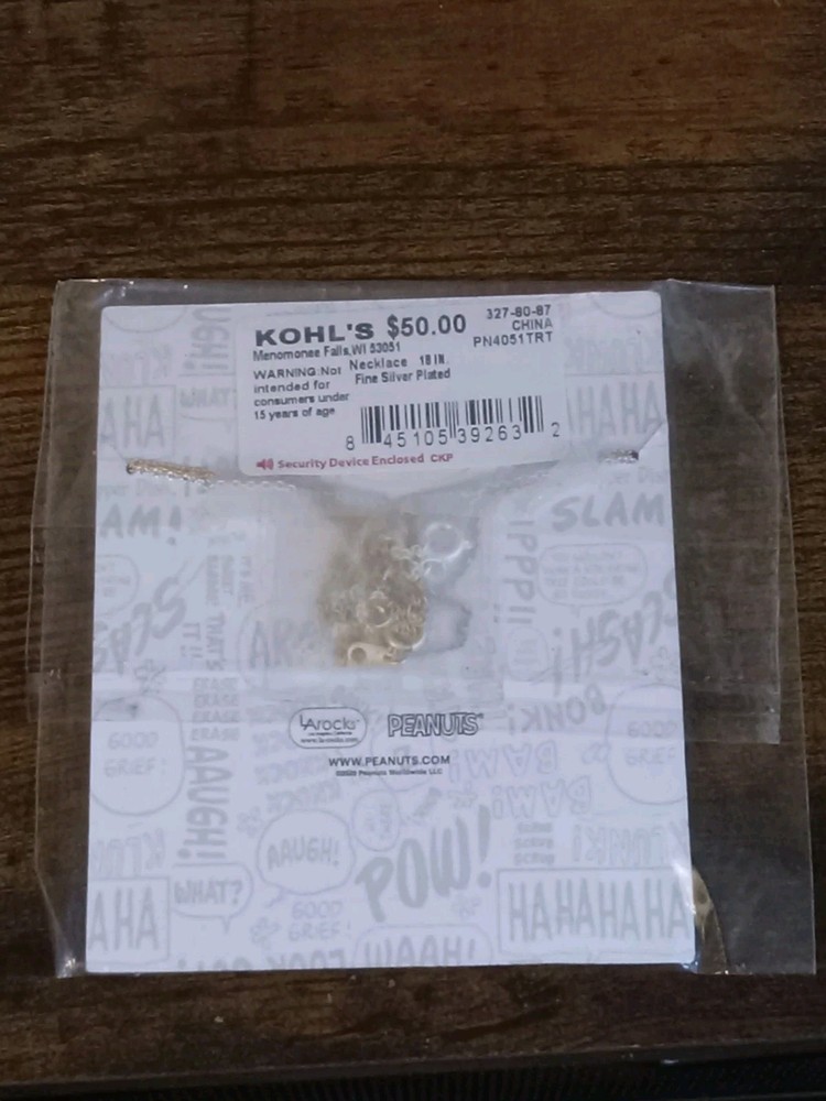 Pair of 18in. Gold & Silver Plated Necklaces of Snoopy & Woodstock from the Show PEANUTS with Charlie Brown Brand New Never Opened