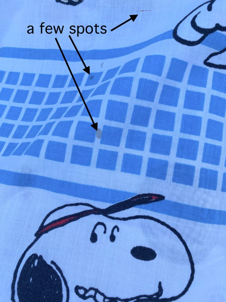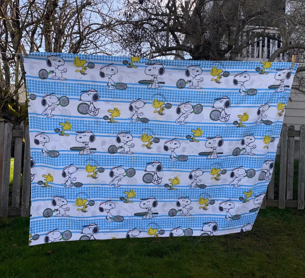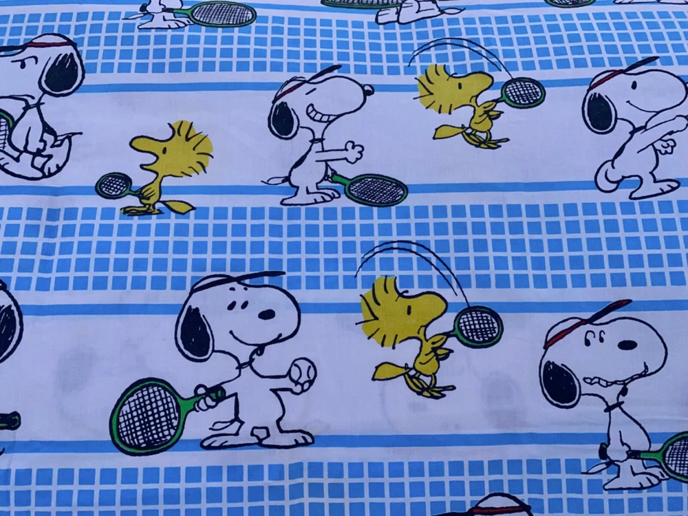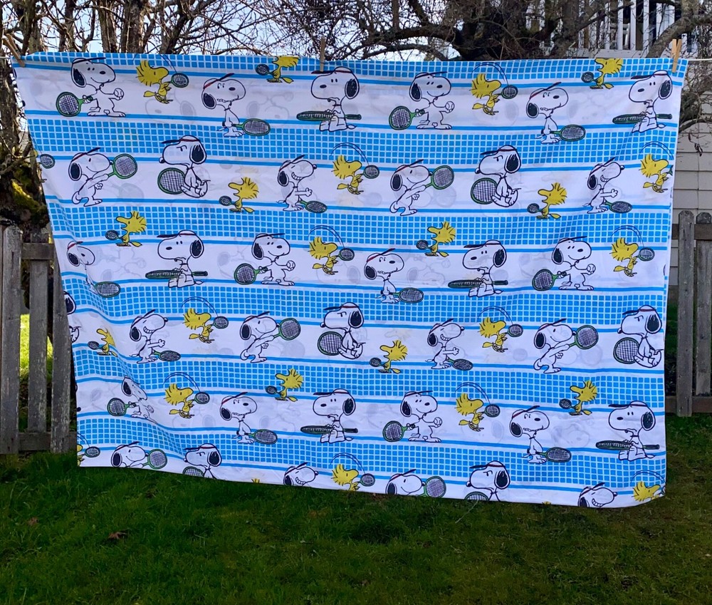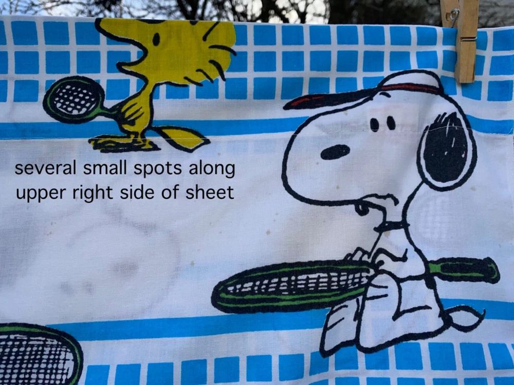 70s Vintage JP Stevens Tastemaker .. Peanuts Snoopy & Woodstock play Tennis! Twin Size Flat Sheet Good pre-owned condition. No holes. Does have some light spots (see photos) no smoking no cats Fast shipping