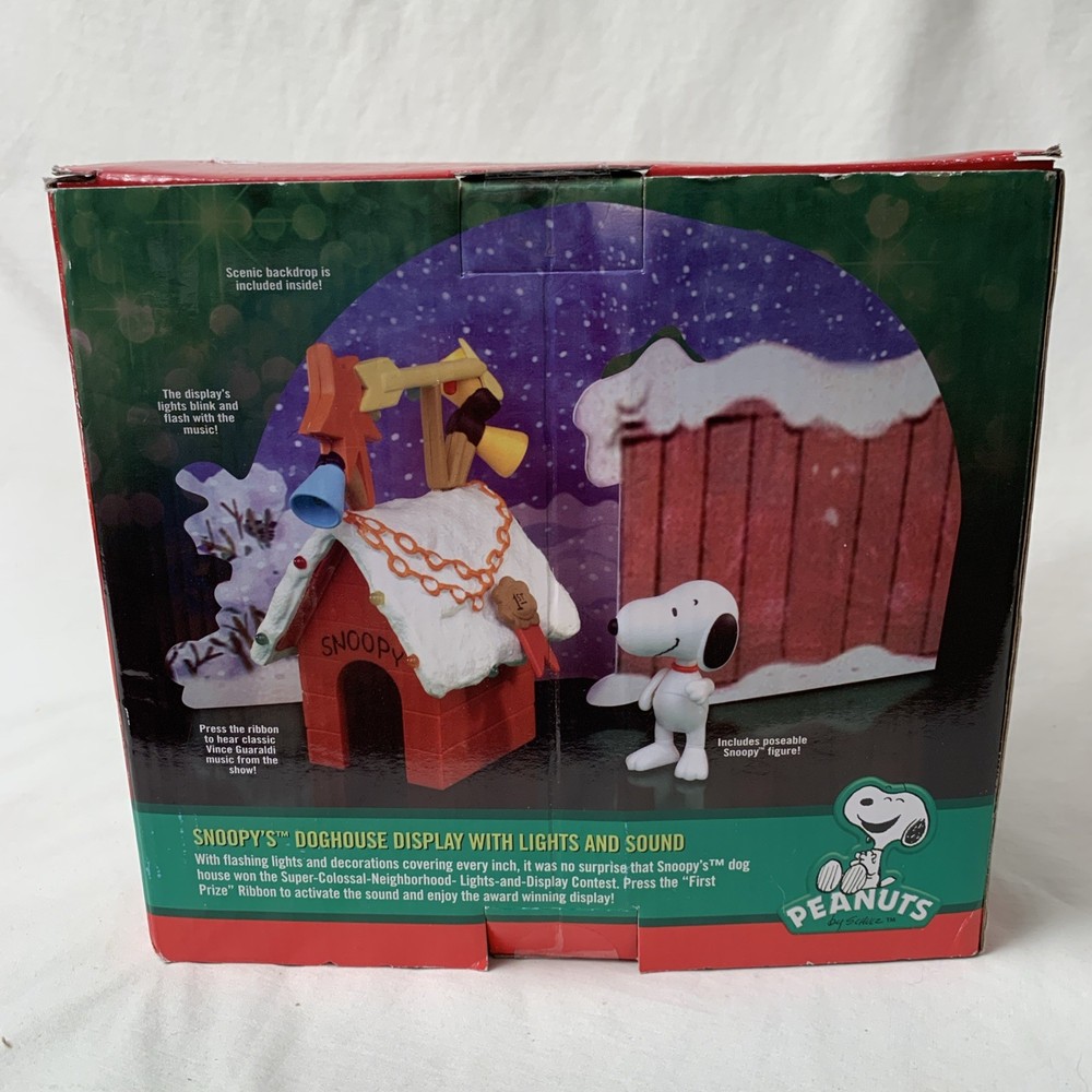New in box Snoopy’s Doghouse display with lights and sound. Lights and sound not working (assumed dead battery). See photos for condition. Sold as is.