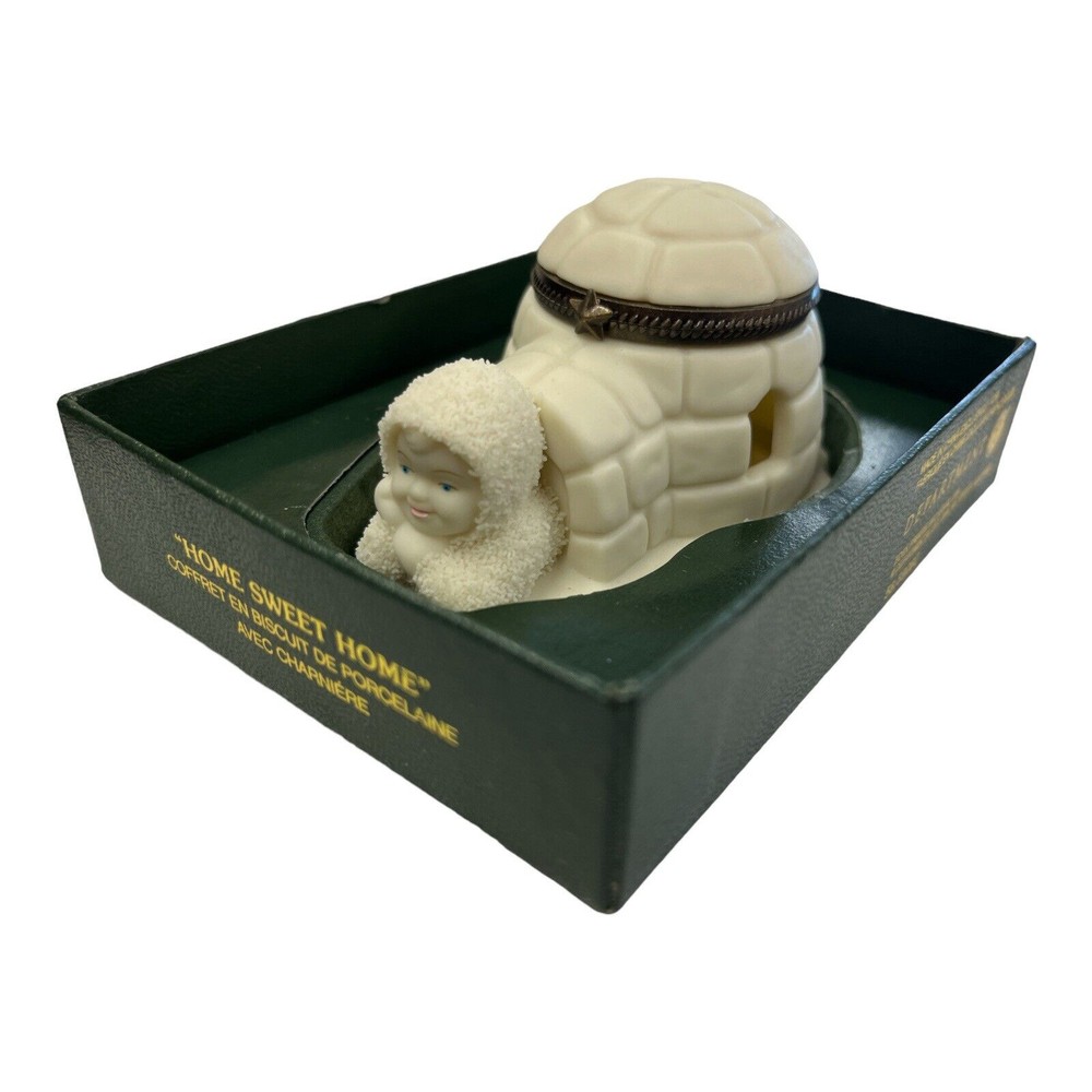 Dept Snow babies Bisque Christmas Trinket Box Home Sweet Home Igloo.