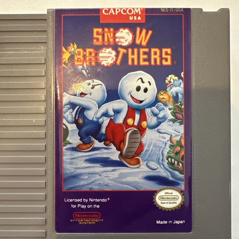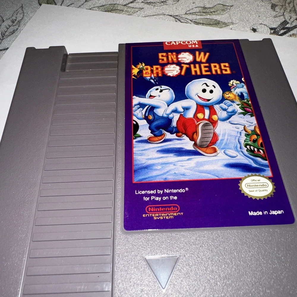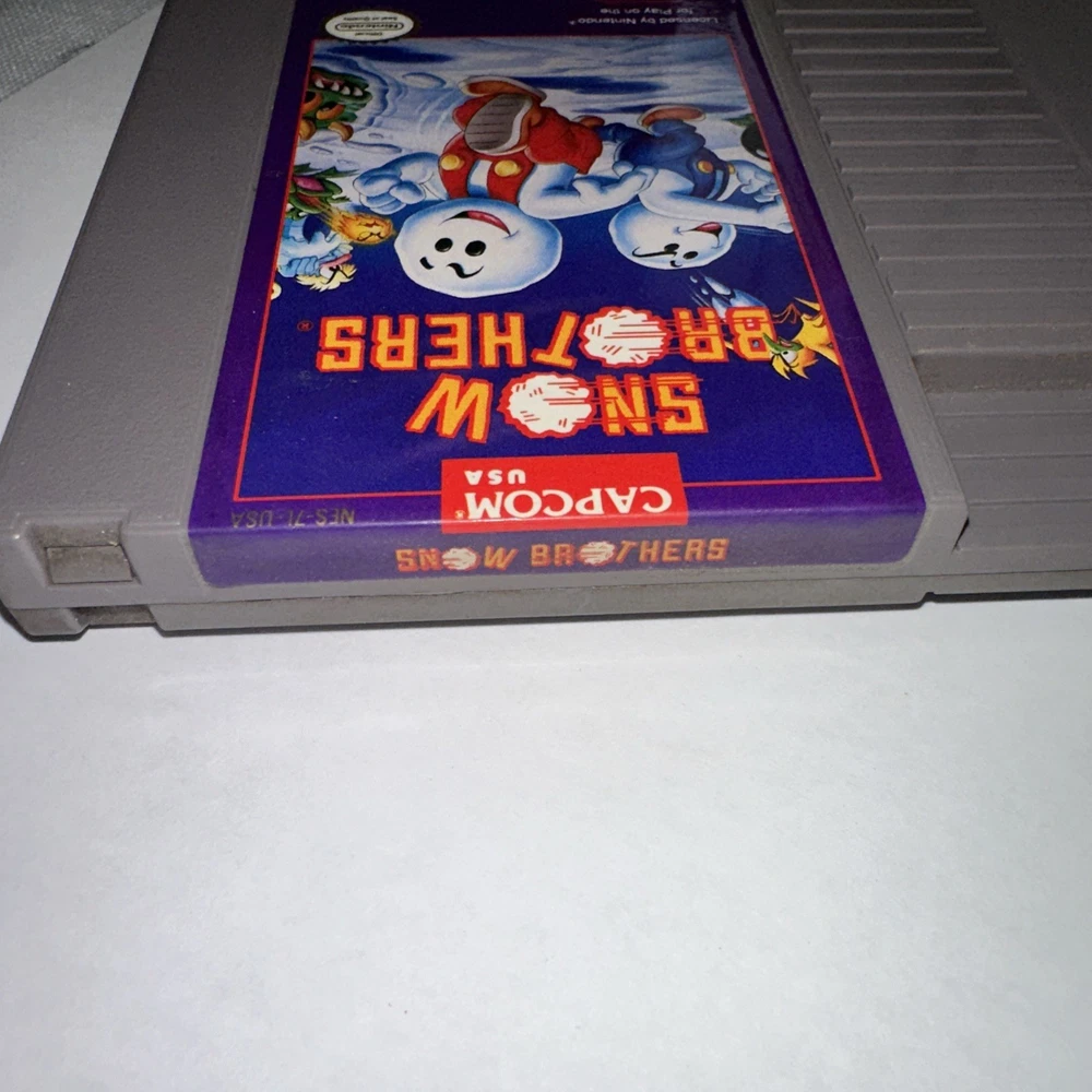 The product is a rare Nintendo Entertainment System game cartridge of "Snow Brothers" released in 1991 by Capcom. This action and adventure game is rated E10+ (Everyone 10+). The game follows the story of two snowboarding brothers as they go on various exciting adventures in the snowy mountains. Players can expect an engaging gameplay experience with challenging levels and fun gameplay mechanics.
