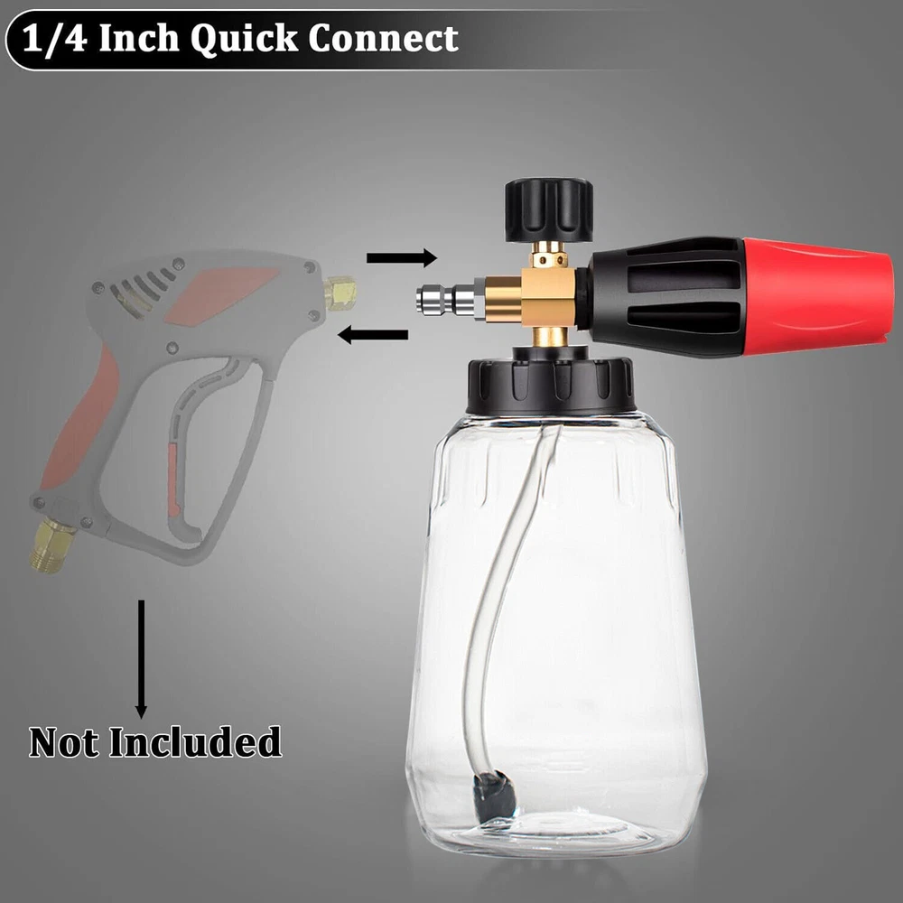 Features 【BIG MOUTH FOAM CANNON】 【ADJUSTABLE NOZZLE UPGRADE DESIGN】 【HIGH QUALITY】 【EASY TO USE】 【MULTIPLE USE PRESSURE WASHER FOAM CANNON】 Package includes: 1x Soap Foam Cannons Snow Foam Lance Cannon Soap Bottle Sprayer For Pressure Washer Gun Jet Car Wash Features 【 BIG MOUTH FOAM CANNON 】: Our car soap foam gun simplifies the process of washing your car by producing a thick and luxurious foam. Its easy-to-pour bottle design ensures that you won't waste any soap liquid. 【 ADJUSTABLE NOZZLE UPGRADE DESIGN 】: To achieve the thickest foam mixture, simply turn the top knob in a right (-) direction. This knob controls both the amount of water used and the overall thickness of the foam. Due to the foam gun's design, you'll be able to produce a thick, high-quality foam that is perfect for washing your car or other vehicles. 【 HIGH QUALITY 】: The adjustable nozzle is constructed with a heavy-duty brass core and stainless steel, which improves the sealing of the joint effectively. our car wash foam gun can handle a maximum working pressure of3800 PSI. The knob can be adjusted to achieve the desired foam level, and the adjustable nozzle can be modified to change the spray width and angle as necessary. 【 EASY TO USE 】: This snow foam cannon is very easy to use. It comes with 1/4 inch quick connect accessories and an upgraded filter block design that provides maximum protection against damage from foam or water particles while being used. The 1/4 quick coupling allows the cannon to be securely attached to your pressure washer gun. Additionally, the adjustable foam concentration and spray angle help to improve the foam coverage and cleaning effectiveness. 【 MULTIPLE USE PRESSURE WASHER FOAM CANNON 】: Our foam sprayer is compatible with most pressure washers and can be used for a variety of applications, including washing cars, bikes, motorcycles, floors, windows, driveways, roofs, and siding. It's great for removing dust and dirt from your vehicle, including even the smallest cracks and crevices. Package includes: 1x Soap Foam Cannons Payment Shipping Return Contact us About us Payment 1.Paypal, Credit Card, G Pay etc, many payment way is accepted. 2.Please be sure your shipping address is correct before make a payment. Shipping 1.We will ship out the item within 1-3 business days after comfirming the payment, appreciate your patience. 2.If the items are broken on the way( we will check the orders clearly before we sent them ),please contact us in 3 days you received it. We will send you a new one or refund your payment. Return 1.We stand behind every buyer.Items can be returned for exchange or refund within 30 days. 2.Please contact us when you have any confusion of our item, we will solve the trouble for you as soon as possible. Contact us 1.This is professional Seller.We will reply your message within 24 hours. 2.Please contact us whenever you have any question about the item. We will deal with it as soon as possible. 3. If you are unhappy with the item or our service,please Contact Us before leave feedback,just give me a chance,thank you! About us 1. Unless specified otherwise, all our products are IN STOCK and are shipped from Local warehouse - Not Overseas! 2. We provide a 30 day Satisfaction Guarantee or your money back (provided items are in the same new and resaleable condition.) 3. We have a PayPal Verified Business Account, please buy with Confidence! 4. Every item will be tesrted before send.We know our products well and if we don't have the answers we will do our best to find them for you! 5. Our friendly team look forward to serving you! Your satisfaction is our No.1 Priority We will do our best to satisfacy you.