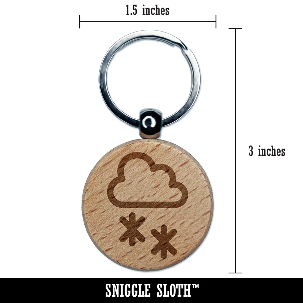 Snow Storm Icon Engraved Wood Round Keychain Tag Charm