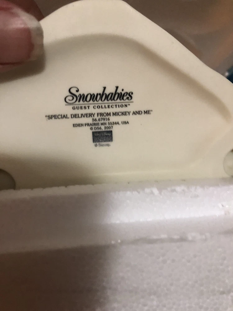 This Snowbabies figurine is a special delivery from Mucky and Me, perfect for your Christmas decorations. Made of resin with a matte finish, it features a colorful design and measures 5.25 inches in length. This collectible item is an original from the Department 56 brand and is part of the Snowbabies collection. It's a great addition to any figurine collection, especially for fans of cartoon and TV characters. This figurine is an adult size and was manufactured in China in 2007. With only 1200 of these made, this is a rare find and a must-have for any Disney collector.