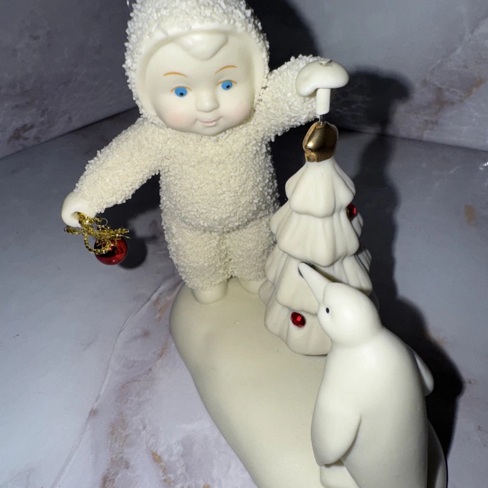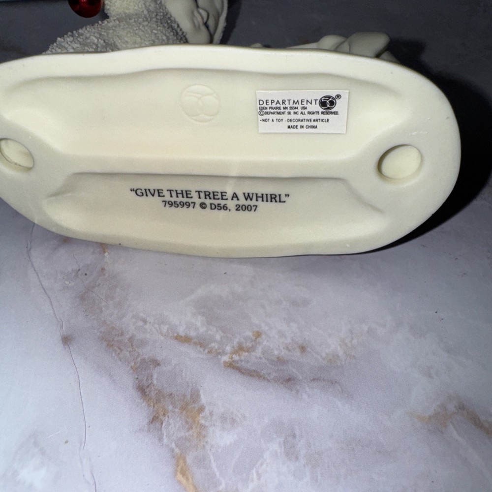 Crafted with care, the Snowbabies "Give The Tree A Whirl" figurine is a charming addition to any Christmas collection. Featuring a delightful penguin adorned with a baby, this piece captures the essence of the holiday season. Produced by Department 56 in 2007, it represents the whimsy and joy that Snowbabies are known for. This small ceramic and porcelain figurine boasts a matte finish, giving it a classic, timeless look. Originating from China during the early 2000s, it's part of the beloved Snowbabies collection. Whether it's for your own festive display or as a thoughtful gift, this unique piece is sure to be cherished.