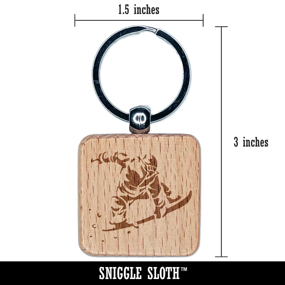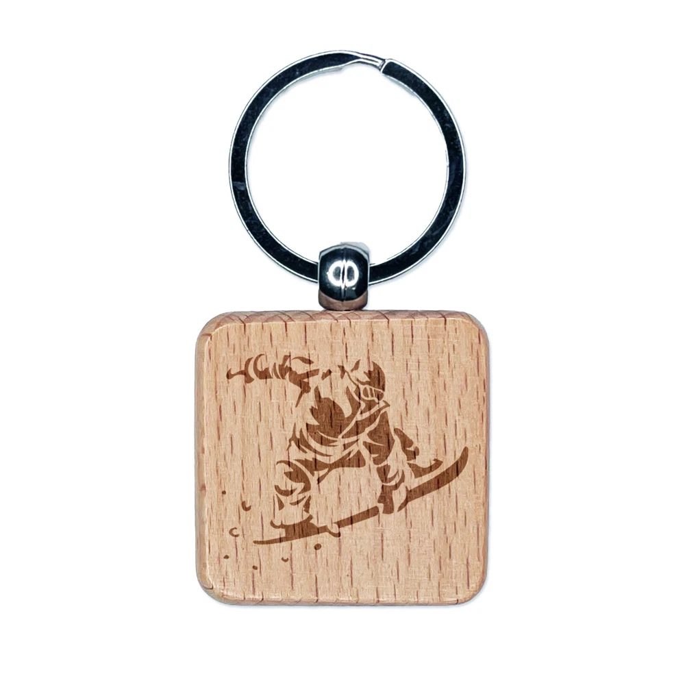 Snowboarder Jumping Flying Through Air Engraved Wood Square Keychain Tag Charm