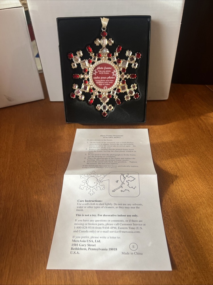 Snowflake Photo Frame Ornament with Rhinestones in Silver Gold Red Gift Box