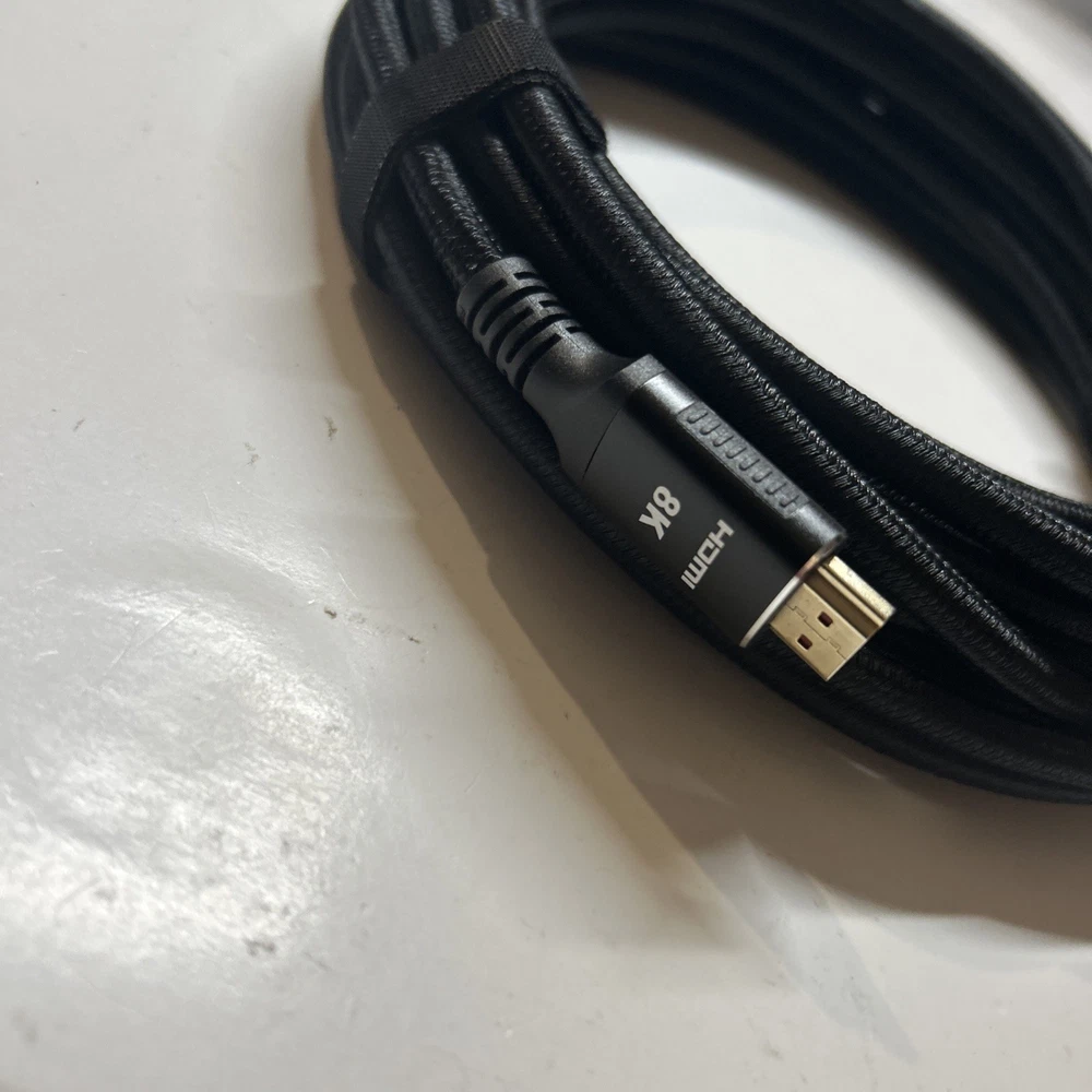 Open box New item! UHD HDMI 2.1 Cable: Meets the newest standard HDMI 2.1 Version and charactrize by 3 times transmission speed more than Ultra HD 4K, less lag, stuck and flick. This HDMI cord is also backward compatible with HDMI 2.0b/2.0a/1.4/1.3/1.2/1.1 version Supports 8K Video and More: This hdmi to hdmi cable supports 3D, Ethernet, 8K@60Hz, 4K@120Hz, 2K, 1080P, 48Gbps bandwidth, 48 bit/px HDR color depth, TrueHD 7.1 and new features such as eARC, VRR, QFT, QMS, ALLM, DSC, and more Universal Compatiblility: The 8k hdmi cable is compatible for all of HDMI devices, e.g., HDTV, Laptop, Monitor, ps-5, X-box, Projector, Entertainment/Sound/Video Conference System, Blu-ray players, and more. Fits for home and office, indoor and outdoor Durable Design: The SR Flexible Strength Design, 24K gold-plated ports and military-grade tensile nylon can ensure that this 8k hdmi cord withstand up to 25,000 flex times and accurately transmits signals, greatly extending use life Strict Quality Control: Our HDMI 2.1 cables have been put through rigorous performance tests in the laboratory before delivery. One 25 foot 8K HDMI cable in the box