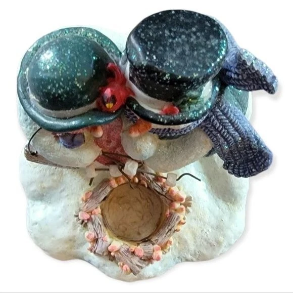 This charming vintage snowman couple figurine captures a heartwarming winter scene, complete with a bird nest accent. • Intricate detailing • Winter-themed decor • Durable material • Collectible Christmas decor Features: • Votive Candle Holder, Christmas Decor Size: 6" x 5 1/2" x 6" Condition: Pre-Owned Good Good Condition Gently used Zero Signs of Wear Please read the description for further details and measurements, Thank you!