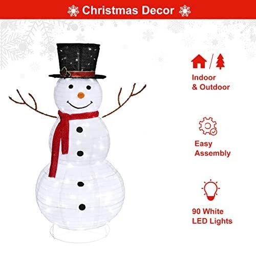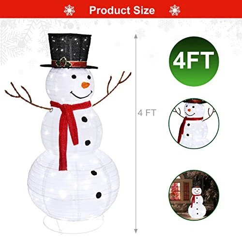 30 Days Return Policy Fast Delivery Trusted seller Snowman Outdoor Christmas Decorations with 90 LED Lights, Lighted Snowman with Top Hat Holiday Ornaments Yard Decor for Home, Lawn and Front Yard-4 FT Product Description 【Attractive Christmas Decor】Our lighted snowman is perfect decoration in Christmas season. With pre-lit lights,the outdoor snowman decor is gorgeous yard art to celebrate your Christmas. 【90 Cool White LED Lights】The snowman is 4 FT height together with 10 FT power cord and prelit with 90 cool white LED lights. The lights glow brightly and warm the hearts of you and your family. 【Easy Assembly & Storage】With easy set up structure, you can assemble snowman Christmas lawn decoration in a few minutes. It is easy to install and take part to storage for next use. 【Durable Structure】The cute twinkling outdoor snowman display is designed with metal connections & snowflakes fabric and coming with stakes to anchor to the ground that make it sturdy in winter months 【Widely Applicable】The size of the 4 FT light up Christmas snowman ornament is perfect and can be used in multiple locations such as yard,lawn and indoor. Shipping Returns Payment Shipping Shipping is FREE to all addresses other than APO/PO boxes in the lower 48 states. All our stock ships from US-based warehouses. Shipped via USPS or UPS (depending on location and package weight) Unless stated otherwise, all orders will ship within 24-72 hours of your payment being processed. Check our feedback to see the great reviews of FAST shipping we offer. Returns As our valued customer, we will do our best to make sure the product you receive arrives to you on time and as expected. If you are not satisfied with your purchase, please contact us within 30 days of receiving your order to process a return. Payment We currently accept payment via eBay managed payments only. Once payment is cleared, we will dispatch your shipment within 1-3 business days. Please refer to the "Shipping" tab for more information regarding shipping speed to your destination.