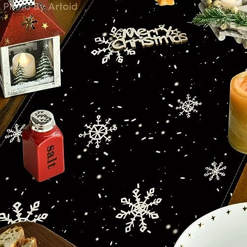 Return Policy Fast Delivery Trusted seller Black Snowman Snowflake Let it Snow Winter Table Runner, Christmas Kitchen Dining Table Decoration for Home Party Decor 13x72 Inch Product Description Polyester Imported High Quality & Durable : Made of 100% spun polyester, sturdy sewing, soft and durable, protecting your table's surface from hot pans, scratches, and spills Bright Home Decor : Add flair to your home decor with colorful table runners. Perfect for kitchen dining daily use themed party decoration, holiday and special events celebration Fits Table Size : This table runner is 13 x 72 inch, appropriate for a table that can seat 4-6 people, better match your table and give you a delightful dining experience Easy to Clean : Machine wash and lay the table runner flat to dry. Stays the same and as new after every wash. Material: 100% Polyester, no shrink, no fading. Imported, Country of origin: China Designed with You in Mind : table runners are designed by professionals. Vibrant color and unique pattern print offers you creative and unique idea to decorate home Shipping Returns Payment Shipping Shipping is FREE to all addresses other than APO/PO boxes in the lower 48 states. All our stock ships from US-based warehouses. Shipped via USPS or UPS (depending on location and package weight) Unless stated otherwise, all orders will ship within 24-72 hours of your payment being processed. Check our feedback to see the great reviews of FAST shipping we offer. Returns Seller does not accept returns Payment We currently accept payment via eBay managed payments only. Once payment is cleared, we will dispatch your shipment within 1-3 business days. Please refer to the "Shipping" tab for more information regarding shipping speed to your destination.