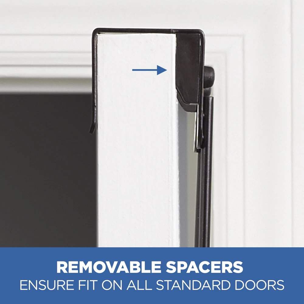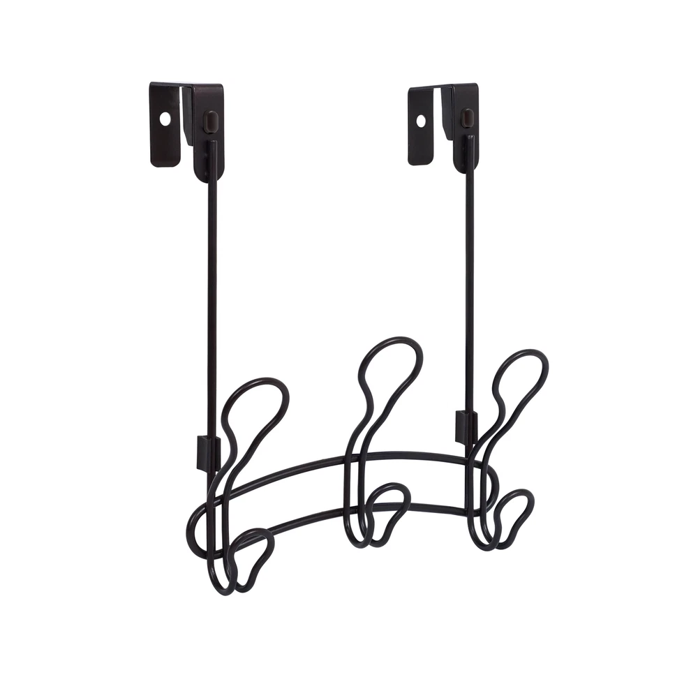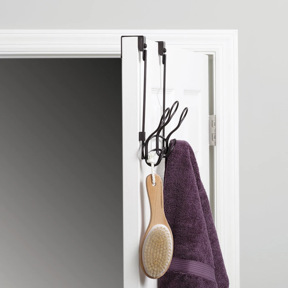 Create hanging storage for towels, robes and more with the SnugFit 3-Hook over-the-Door Rack. With its exclusive patented SnugFit technology, this organizer installs securely and with no tools over any interior door. It features three double hooks (six hooks total). The over-the-door hook rack includes scratch-resistant spacers and quiet-close bumper guards. Use the portable hook rack in your bathroom, closet or anywhere else extra storage is needed. It features an attractive oil rubbed bronze finish. Over-the-door hook rack creates valuable hanging storage for towels, bathrobes and more Requires no tools and causes no damage to your door Innovative double hook design (6 hooks total) Built-in bumper guards protect door from scratches and reduce noise Features patented SnugFit technology with removable spacers for an easy to install and secure fit on any standard door