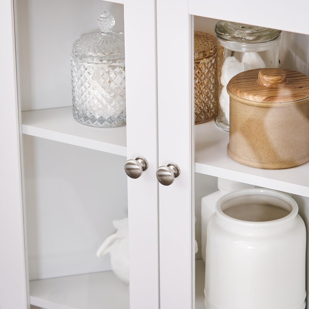 Tall Corner Cabinet, Bathroom Storage Cabinet, Kitchen Storing Unit with Adjustable Shelves Glass Doors Organizer for Space Saving, White BZR145-W [Adjustable Shelves for Space-saving]: The free standing storage cabinets with doors and shelves, open shelves that provide enough space. The baffles between the compartments can be removed or adjusted in height, facilitating you to use more flexibly. [Made for Small Spaces]: This tall thin storage cabinet is designed with convenience and functionality in mind. It is perfect for narrow spaces or to be placed behind a door. Despite the small floor area, it offers ample storage space, allowing you to keep your items organized and easily accessible. [Versatile Storage Cabinet]: This multipurpose slim cabinet seamlessly integrates into narrow spaces in bathrooms, laundry rooms, kitchens, living areas, foyers, or hallways. It accommodates a diverse range of items, including tableware, cans, shower essentials, towels, laundry detergent, CDs, books, and decorations, providing convenient storage solutions for every corner of your home. [Safe]: This floor-standing storage cabinet is made of high-quality medium-density fiberboard, which is of excellent quality and has a white surface, which is smoother and more beautiful. [Explanation of Tall Silm Cabinet]: Dimension: W23.6x D16.9x H63.4 inch. Weight: 54.49 lbs. Experience hassle-free assembly with detailed instructions, numbered parts, and precision-drilled holes.