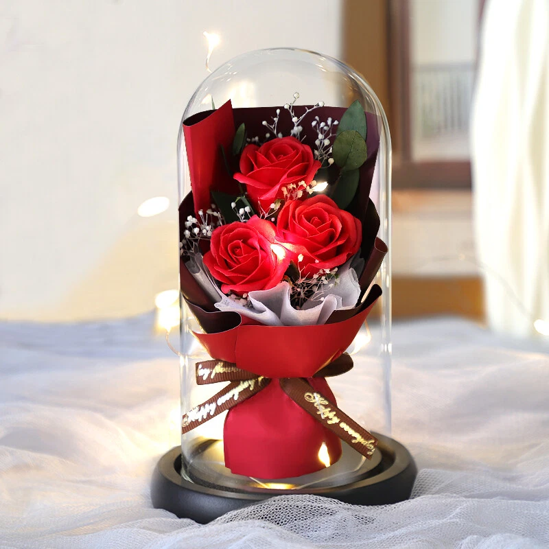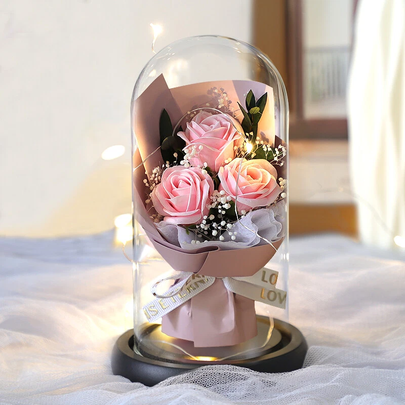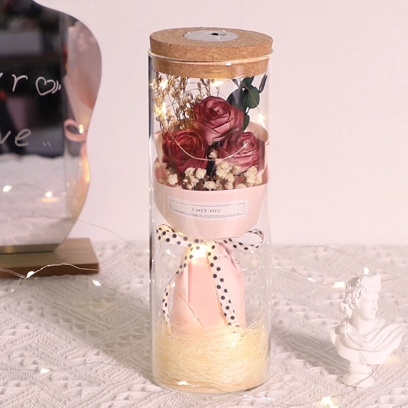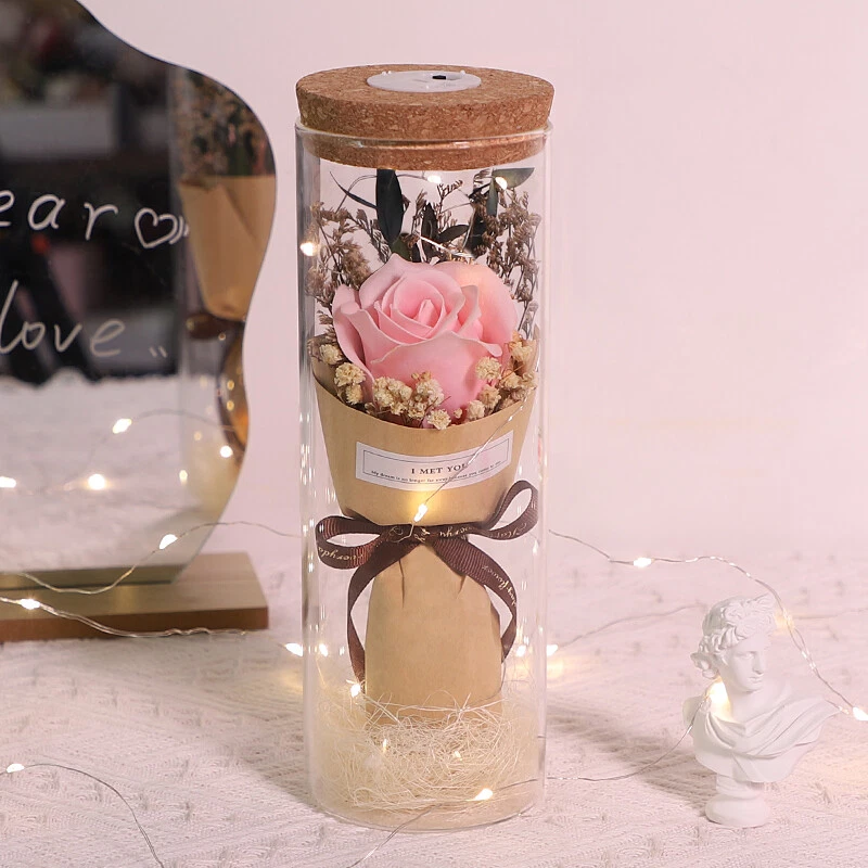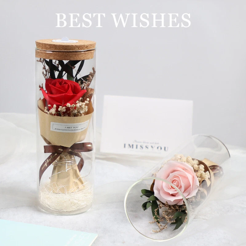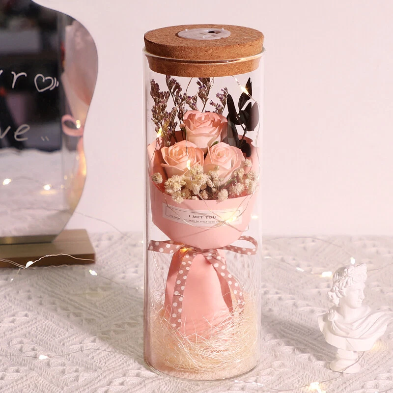 Soap Flowers Gift Box Bouquet Preserved Flowers in Glass Gifts for Women