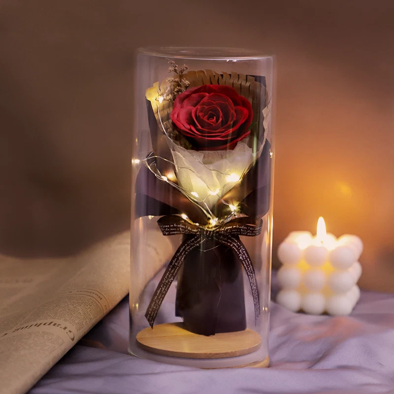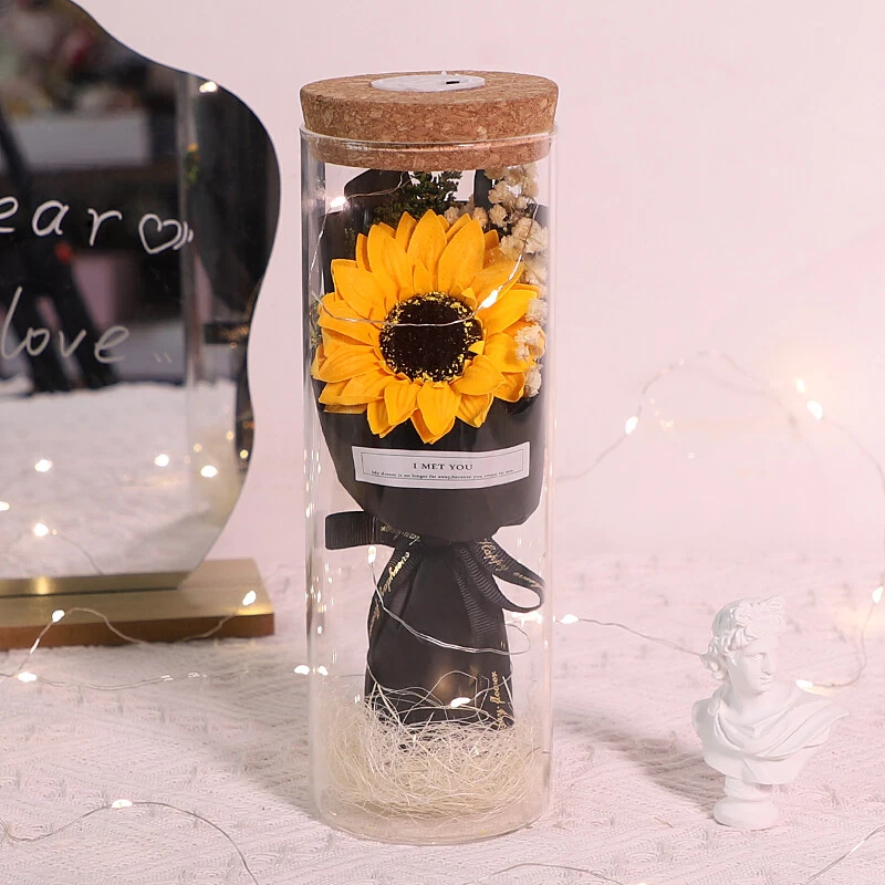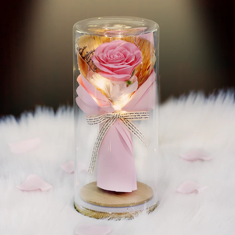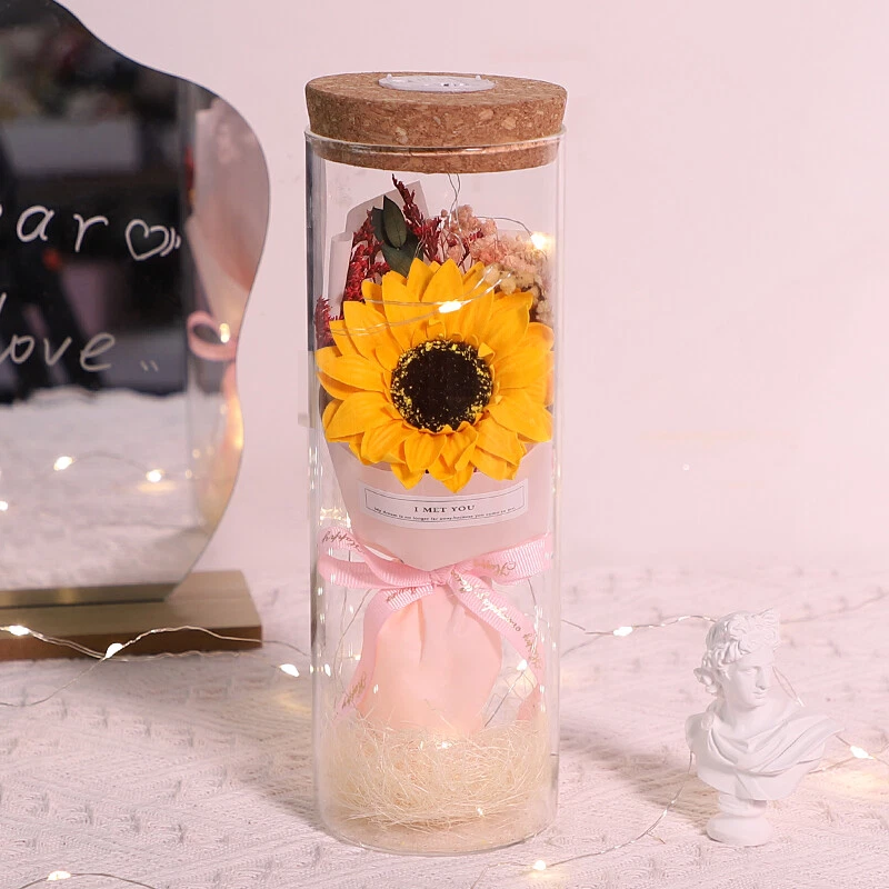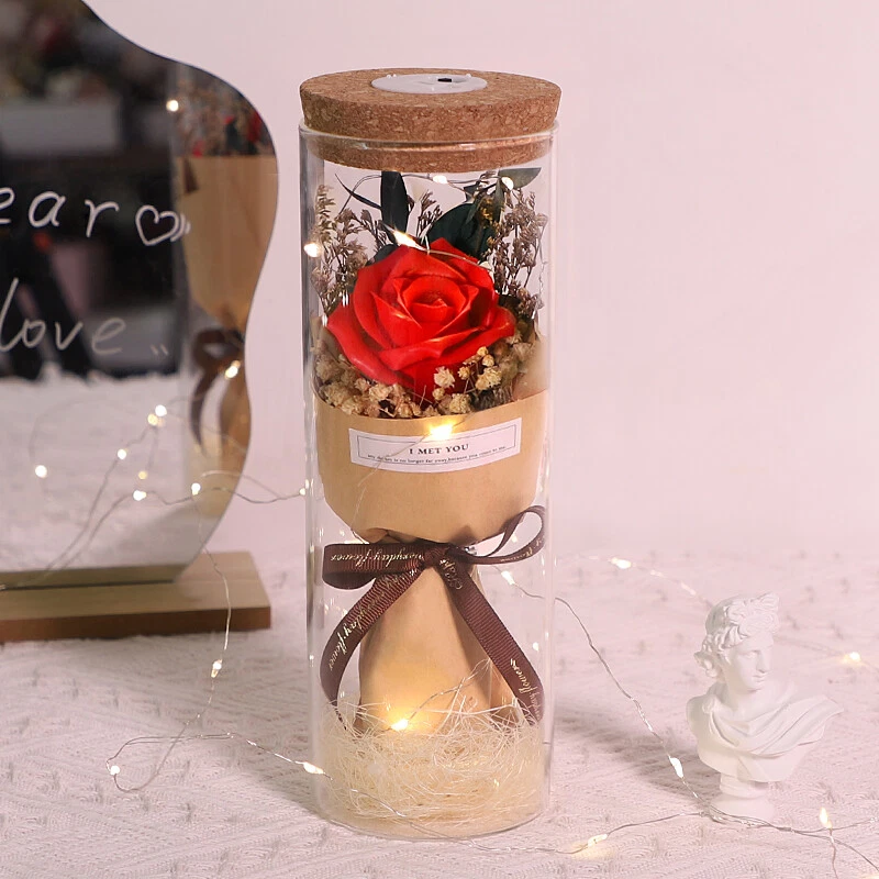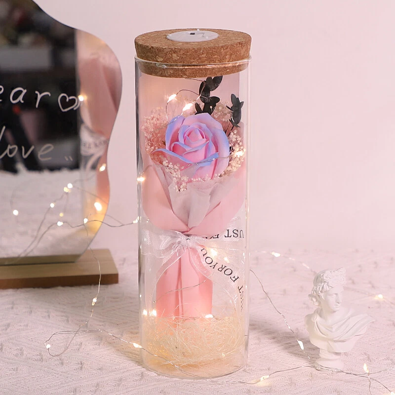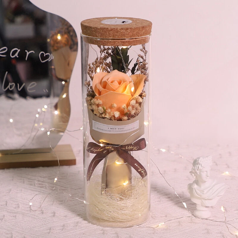 Soap Flowers Gift Box Bouquet Preserved Flowers in Glass Gifts for Women