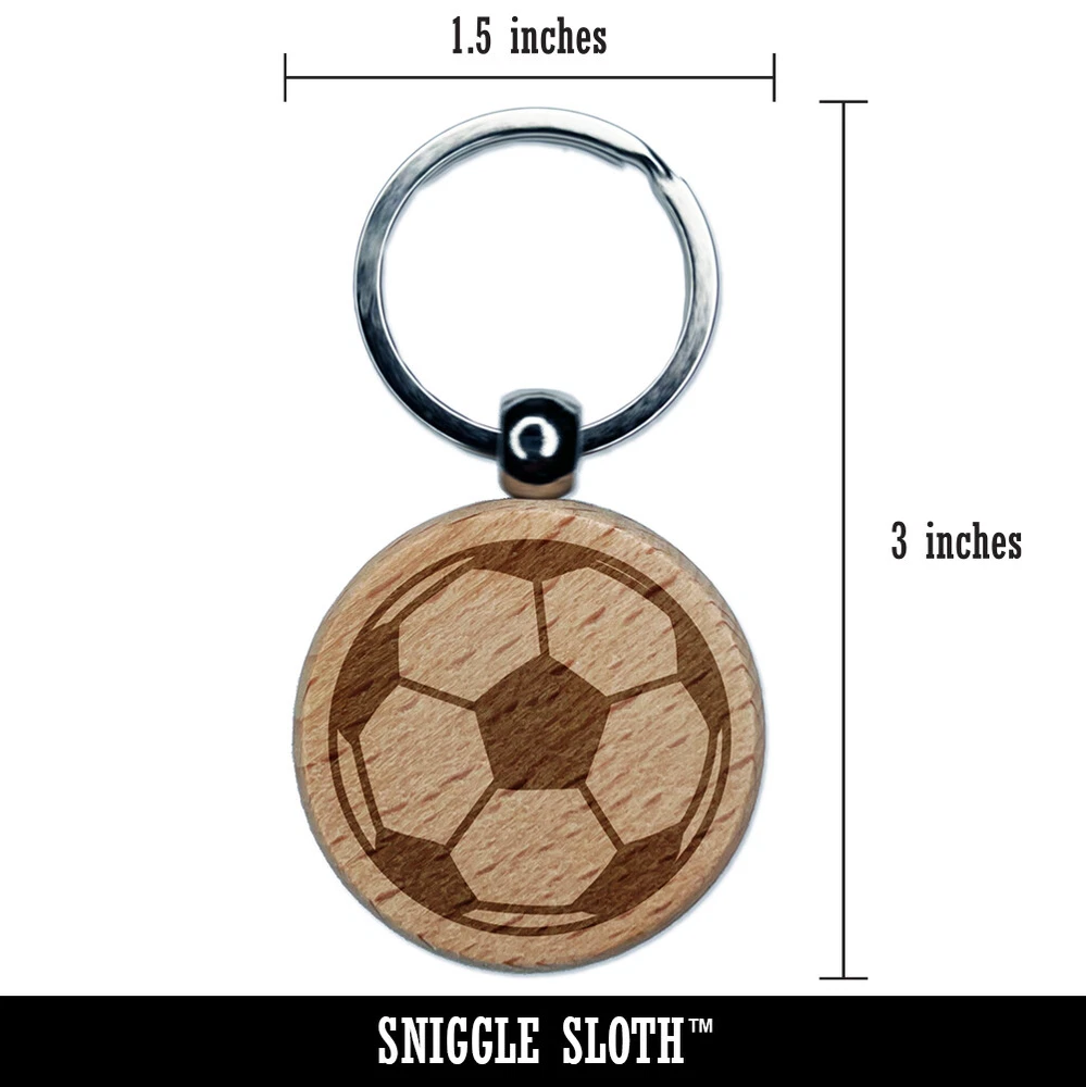 Soccer Ball Engraved Wood Round Keychain Tag Charm