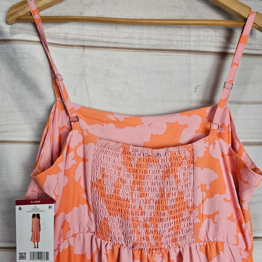 Social Standard by Sanctuary Smocked Back Dress Size XL Pink Maxi Tiered Floral New with tags Stretchy Adjustable Spaghetti straps, ruched back Orange with pink flowers allover 100% polyester Same day / next day shipping Offers accepted Thank you! 0324 11oz #boho #floral #Sundress