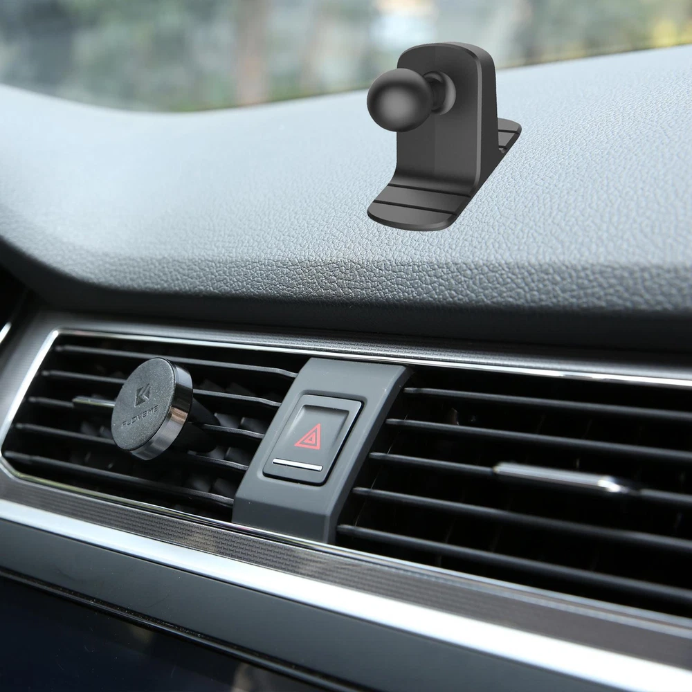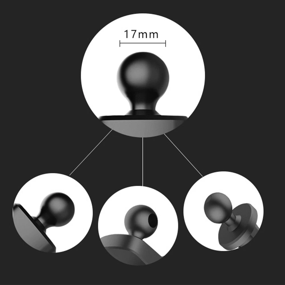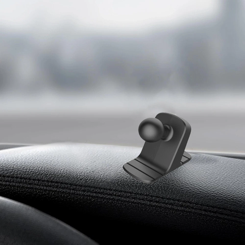Sticky Force: Adhesive provides strong stick force between the dashboard and the car phone holder, which can firmly stick to any plane in the car, fix your device, and adapt to a variety of road conditions such as sudden braking, speed bump, and rugged mountain road. \nSafe Driving View: Mini-size, not taking up space, it is placed in the dashboard without blocking the view at all and does not need to look down at the device to ensure your safe driving.\nConsiderate Design: Adhesive phone mount with bendable design, no flat surface, suitable for a variety of dashboards, strong adhesive, stable and not hurting the car.\nUniversal Ball Joint: Fit for most car mounts and other air vent mounts in the market, Suitable for most car vents. (please refer to the sizes strictly and note phone holder is not included)\nEasy Installation: Benefit from the special design of the clip mount, this car mount is quite easy to install, just need to put it on the car’s outlet blades, or stick it anywhere you like.\n Features: 1. Double-clamp connection, easy to use, and suitable for multiple models. 2. Easy to put in, not to fall off, easy to operate, and more convenient to use. 3. The anti-slip rack is stable and does not fall. 4. Universal stand base, beautiful and stable base, used with a mobile phone stand. 5. Imitate the car air outlet and fix the car bracket.\nSpecification: Name: Car phone holder base Material: ABS Applicable models: general purpose Size: Universal 17mm Ball Head