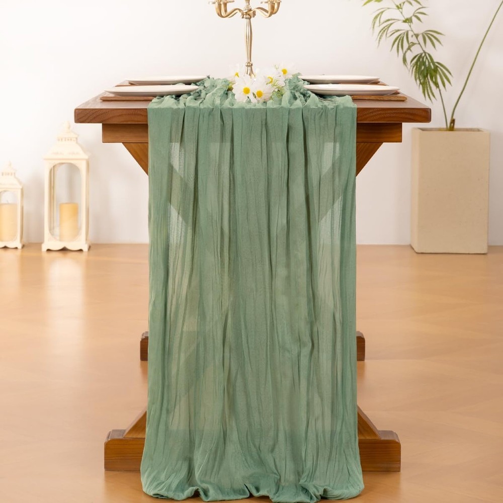 $ 10.6912 Pack Cheesecloth Table Runners – 10FT Rustic Gauze 10ft x 12pcs Sage Green
