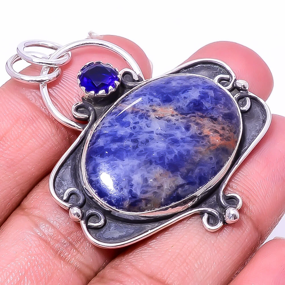 Total-weight-of-Jewelry 10.6 gram Main Stone Depth As Seen in Picture Main Stone Length As Seen in Picture Main Stone Width As Seen in Picture SKU P_9392_194_35 Seller Warranty Yes Signed Yes Sizable As Seen in Picture Vintage As Seen in Picture Wholesale Yes Polish Excellent Handmade Yes Occasion Christmas, Birthday, Anniversary, Engagement, Wedding, Valen Unit Quantity 1 Unit Type Unit Type Pendant Style Pendant Main Stone Sodalite Main Stone Color Same As Picture Main Stone Shape Same As Picture Main Stone Treatment Natural Secondary Stone Blue Sapphire Brand Unbranded Setting Style collet setting Number of Gemstones 2 Item Length 1.72" Country of Origin United States Metal Sterling Silver Metal Purity 925 Parts Per 1000 Material Gemstone Color Same As Picture Base Metal Sterling Silver Main Stone Creation Natural Pendant/Locket Type Pendant Shape Same As Picture Country/Region of Manufacture India Theme Beauty Shipping & Handling - Charge - 1st item-5.90 And Additional item-1.90 Handling Time - 1 Days . Delivery Time - 2 TO 3 DAYS. Shipping Service - USPS First Class Package 2 -3 Days. Returns - 1.We offer a 100% Money Back Guarantee minus shipping for 30 days after receiving the Item / item's. 2..The item must not be altered or damaged in any way shape or form. 3.Upon receiving these items your payment will be refunded. 4.Email us for return instructions before sending merchandise back. 5.Please allow up to 1 business day for all returns to receive credit. 6.Sizing does not affect the return policy. Payment - We accept PayPal for Payment ,should made with in 14 days once buying or winning done , in case of late information expected .