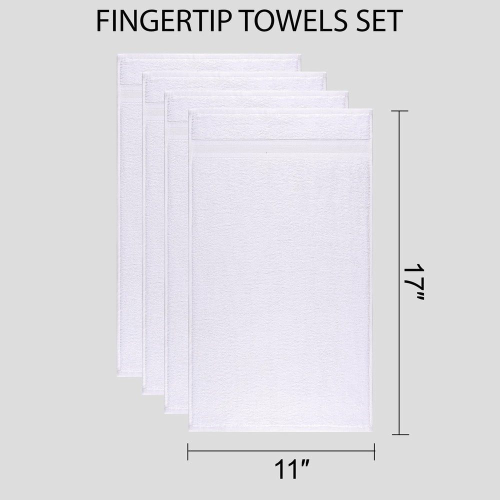 Quick-Dry, Soft & High Absorbent Fingertip Towels for Bathroom Cotton Soft Feel Fingertip Towels 11"x17" | Daily Use 100% Cotton Towels for Bathroom, Gym & More | (4 Pcs, White) Set includes four fingertip towels for bathroom small (11 inch x 17 inch). These truly indulgent finger towels for bathroom are available in a wide variety of beautiful colors to suit any home or hotel bathroom Can be used as finger tip towels for powder room, and is also perfect for use in bathroom, kitchen, gym, spa, office, and for face wash, as it gives you a very soft, comfortable, and lightweight feel, making it both luxurious and functional for you and your loved ones EASY TO CARE - Machine washable powder room hand towels, easy to care and clean. These tea towels for bathroom are specially processed to make the dryer take less time, thus saving time and energy costs. They flow completely out of the dryer, soft and fluffy for the next time Avoid contact with skincare products to help minimize towel spotting or bleaching. Some lint may be observed in the first few launderings of finger towels, and will diminish with each subsequent laundering. This does not affect the look, feel or performance of your mini hand towels for bathroom. Please follow the recommended care instructions on the label and keep the lint trap clean on your dryer. BETTER WATER ABSORPTION - Terry towel material allows for maximum absorbency. Can be used as powder room towels, for poolside, bathroom, Beach, salon, college dorm room essentials , spa, wedding resgisry or gym use. The bathroom fingertip towels set is designed to provide users with all their basic bathroom drying needs to wrap around your hair or to dry your body. These premium white towels have an extra soft feel and are super absorbent. They are versatile enough to be a daily luxury that you won't feel guilty spending on! Towel Sizing: Fingertip towels: 13x17 inches Hand Towel: 16x30 inches Bath Towel: 27x54 inches Why Turkish Cotton : Lovers of cotton bath products are on the lookout for premium Turkish cotton. Premium cotton is better than conventional due to its strength, absorbency and softness, a feeling that becomes even softer after each washing. Care Instructions: Always launder towels first before using them Wash towels separately Do not over-dry the towels, we recommend removing towels from the dryer when 95% to 97% percent dry Fabric softeners, will decrease the towel's ability to absorb water Shipping We offer FREE shipping on all orders! We ship within Three business days of payment, usually sooner. We use a selection of shipping services such as UPS, FedEx, USPS etc. We only ship to the lower 48 states, no APO/FPO addresses or PO Boxes allowed. Local pickups and combined shipping options are not provided at this time. Return You can return a product for up to 30 days from the date you purchased it. Any product you return must be in the same condition you received it and in the original packaging. Please keep the receipt. Payment We accept payment by any of the following methods: PayPal Please pay as soon as possible after winning an auction, as that will allow us to post your item to you sooner! Feedback Customer satisfaction is very important to us. If you have any problem with your order, please contact us and we will do our best to make you satisfied. Contact Us If you have any queries, please contact us via ebay. We usually respond within 24 hours on weekdays. Please visit our eBay store to check out other items for sale! Thank you for shopping at our store.