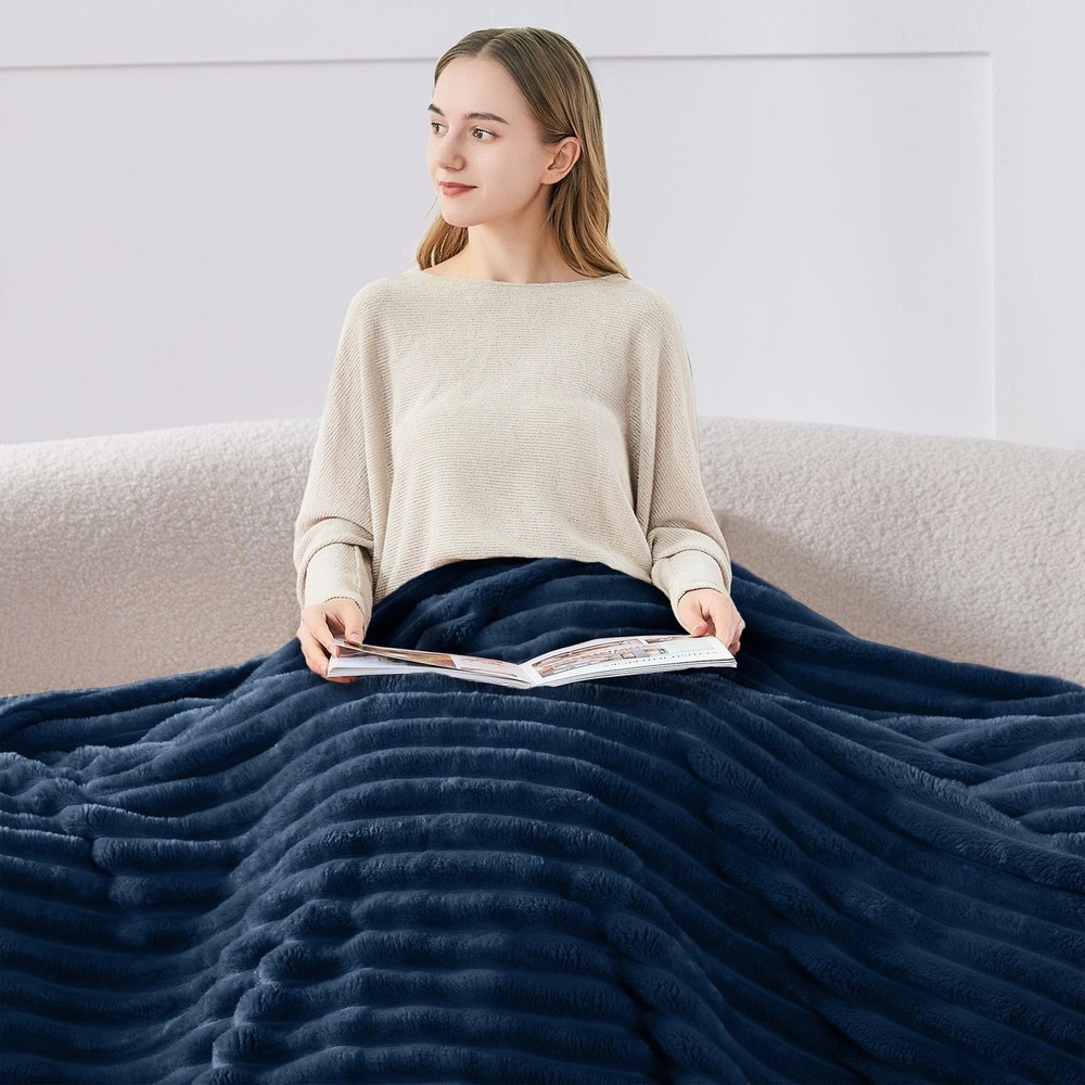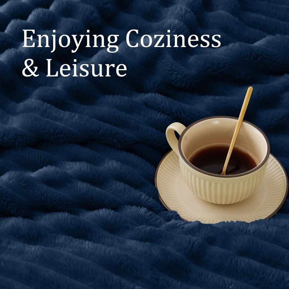 Extra Large Navy Blue Fleece Throw Blanket for Couch - Soft Warm Decorative Cover