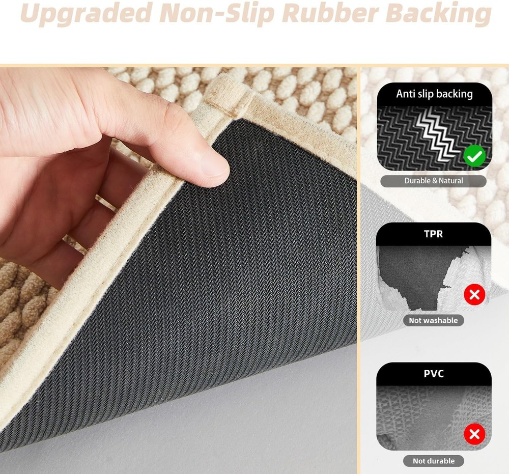 Bathroom Rug - Soft and Absorbent Chenille with 16"*24", Khaki Product Details Brand: BULULOM Size: 16"*24" Material: Chenille Weave Type: Machine Made Pile Height: Low Pile Construction Type: Machine Made Back Material Type: Rubber Color: Khaki Indoor/Outdoor Usage: Indoor Is Stain Resistant: No Product Care Instructions: Machine Wash and Dry Pattern: Checkered Shape: Square Special Feature: Non Slip Room Type: Bathroom Product Dimensions: 24"L x 16"W Rug Form Type: Bath Mat Occasion: Housewarming Number of Pieces: 1 Water Resistance Level: Water Resistant Is Autographed: No Age Range (Description): Adult Item Weight: 1.3 pounds Manufacturer: BULULOM [Fashionably Design]:Bululom bath mats for bathroom is crafted from ultra-soft, high-quality chenille material that is both durable and long-lasting. With its upgraded absorption technology and construction, this bathroom mat is designed to quickly and effectively absorb water, keeping your floor dry and safe from any possible slips and falls [Perfect Non-Slip Rubber Backing] : Bululom bathroom mat use natural rubber material .It can grip on wet and smooth floor tightly and flatly without skidding or curling up, minimize the risk of slipping of kids and elderly.Reminder: Ensure mat is placed on a clean, dry, and flat floor for optimal performance [Superior Absorbency] :Bululom presents an absorbent bath rug crafted with dense chenille, ensuring your bathroom stays clean and dry. Step out of the bath or shower and instantly dry your feet on this shaggy rug, preventing water damage to your floor. The mat's deep piles effectively trap moisture, allowing for a quick and neat drying process. presents an absorbent bath rug crafted with dense chenille, ensuring your bathroom stays clean and dry. Step out of the bath or shower and instantly dry your feet on this shaggy rug, preventing water damage to your floor. The mat's deep piles effectively trap moisture, allowing for a quick and neat drying process. [Easy to Clean and Maintain] :Bululom rugs are designed for convenience and longevity. They are washable and can be easily dried when needed, saving you time and effort in cleaning.Enjoy the vibrant colors of our rugs for a long time as they are fade-resistant, ensuring that their beauty remains intact even after multiple washes. [Versatile Use]:Choose from a range of chic colors and sizes to perfectly complement your bathroom decoration,Versatile rug suitable for use in the bath, in front of the sink, or anywhere in your home to indulge your feet, with Bululom's luxurious Chenille Bath Rug, designed for ultimate comfort and style