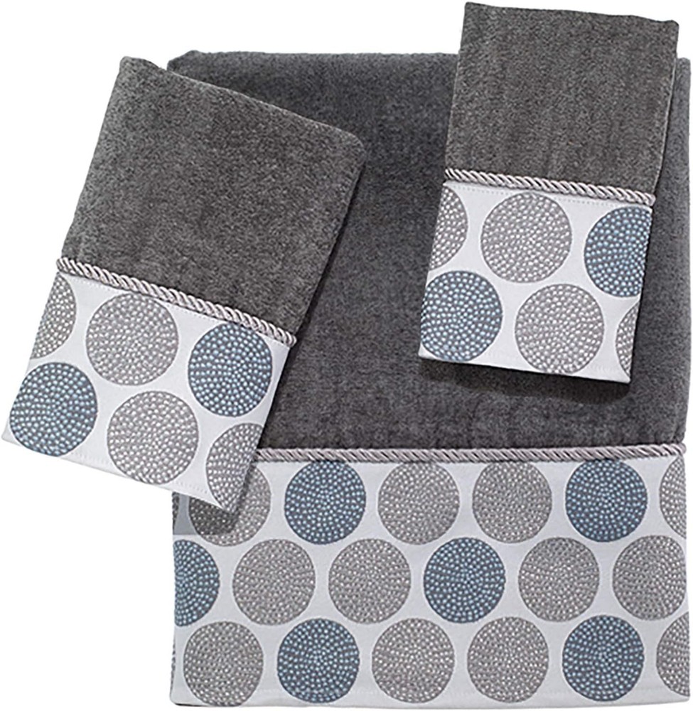 The Avanti Home Dotted Circles collection features towels and bath accessories that instantly upgrade your space. With a contemporary design that can layer on top of existing decor, or even anchor the whole thing, you can't go wrong with the Dotted Circles collection. The towel is made from 100% Cotton, exclusive of embellishments. It's perfect for fancy guest bathrooms, your principal bathroom or anywhere that needs a shot of contemporary decor. INCLUDES: (1) Bath Towel DURABLE AND SOFT: These towels are 100% sheared cotton velour for a smooth, soft finish. OEKO-Tex Standard 100 manufacturing for quality in materials. EASY CARE: Machine washable gentle cycle. Tumble dry low. Remove promptly for best results. DETAIL: Features a repeat of circles with shine inside to form a beautiful contemporary design that enhances your existing décor. COMPLETE PACKAGE: Mix and match with other Dotted Circles bath accessories incuding shower curtain and hooks, tumblers, rugs and more.