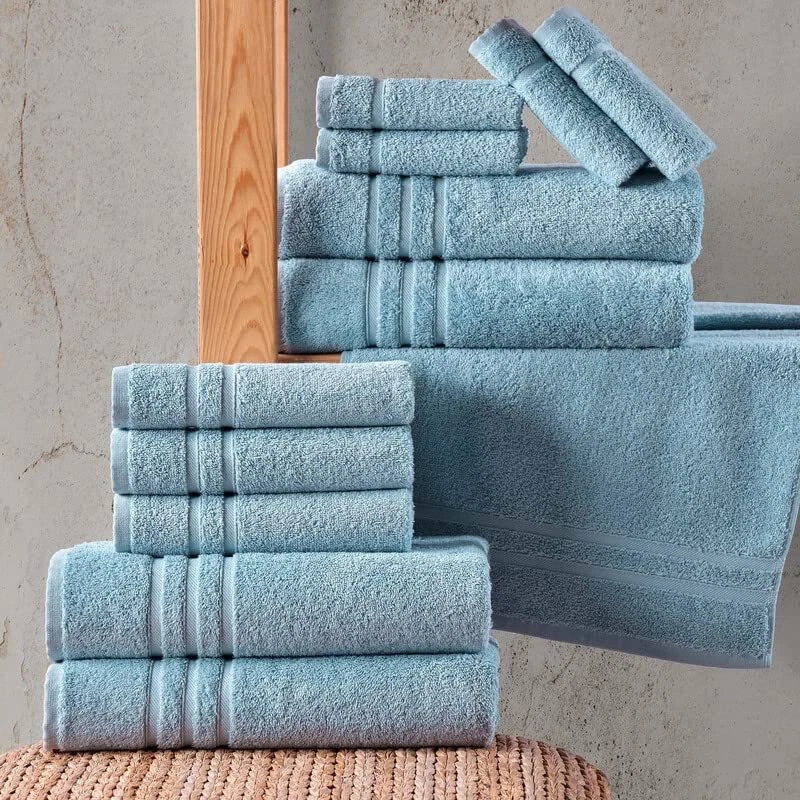 These hand towels are amazing—super soft, ultra-absorbent, and perfect for bathrooms, kitchens, or even travel. The Turkish cotton feels luxurious against the skin, and they dry quickly while staying plush wash after wash. Great value for a 4-pack, and the light blue color adds a fresh touch to any space. Highly recommend!