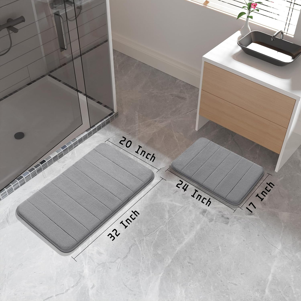 Luxury 2-Pieces Bath Rugs Sets: Our luxury memory foam rugs set includes 1 large bath mat 31.5" x 19.8" and 1 small bath rug 17" x 24". Bath mats can be used at tub-side, front of the sink, or at any place in your home where you want support and warmth on your toes! Super Water Absorption: The soft velvet microfiber layer can absorb as much water as possible from your wet feet. And the water do not stay on the surface on the bath mat A Breeze!-Machine Wash & Dry: Yimobra bathroom rug is easy to clean. Machine wash with cold water and mild detergent (no chlorine or bleach) tumble dry at low speed or hang dry. Color will not fade and will stay vibrant for many years no matter how many times you wash and dry Non Slip Backing: Yimobra bathroom mat rug is constructed with strong and sturdy Pvc backing which helps to prevent shifting and skidding. And it will hold up for years to come, unlike many other brands, whose rubber backing tends to wear and peel off after multiple washes. Prevent from slipping, please make sure the surface under the mat is smooth, clean and dry How Is the Feeling of Walking on the Clouds? It's Yimobra Memory Foam Bathroom! - Thicker and better constructed memory foam bathroom mat, provides comfortable experience for your feet, just like walking on the soft clouds. We have a variety of colors for you to select. Please choose one of your favorite colors to match the home decoration perfectly. Take the clouds home now Product Description More Options Material Extra thick and soft chenille Material Extra Soft Memory Foam Material Extra thick and soft chenille Machine Washable The colors keep vibrant even after many times washes Ultra Water Absorbent Extra soft shaggy microfiber fabric helps save your floors from dripping water Extra Soft and Comfortable Made of 100% super soft chenille fabric, it is very comfortable to stand on Backing Technology Hot Melt Adhesive Non-slip Backing Backing Technology TP Rubber Backing (not PVC or glue) Backing Technology Non-Slip Silicone Adhesive Backing Mutiple Bathroom Mat Memory Foam Super Soft Thick Memory Foam Bathroom Mat Super Absorbent Memory Foam Bathroom Mat Mutiple Size/Color for Choose Home Decoration