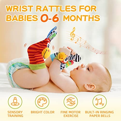 Soft Baby Wrist Rattles and Foot Finder Socks Set for Newborns 0-6 Months