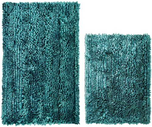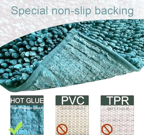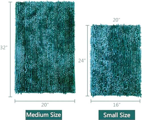 1. These bathroom rugs are amazing! Super soft, ultra-absorbent, and the dark teal color looks luxurious in my bathroom. The non-slip backing keeps them secure, and the velvet chenille feels cozy underfoot. The two sizes are perfect for different areas—love them! Quick shipping too. Highly recommend!