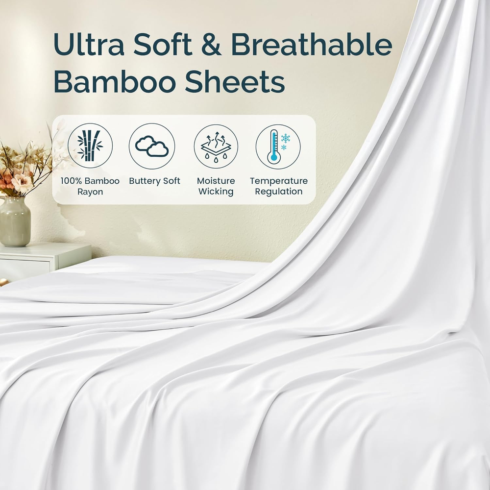 $ 77.09Twin XL Bamboo Rayon Sheet Set - Soft Breathable Cooling Bed Sheets