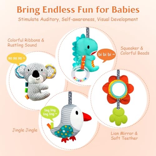 Soft Car Seat & Stroller Toys for Babies 0-3 Months - Colorful Developmental Play