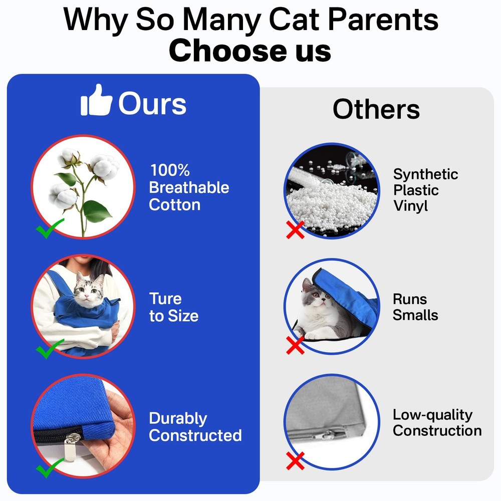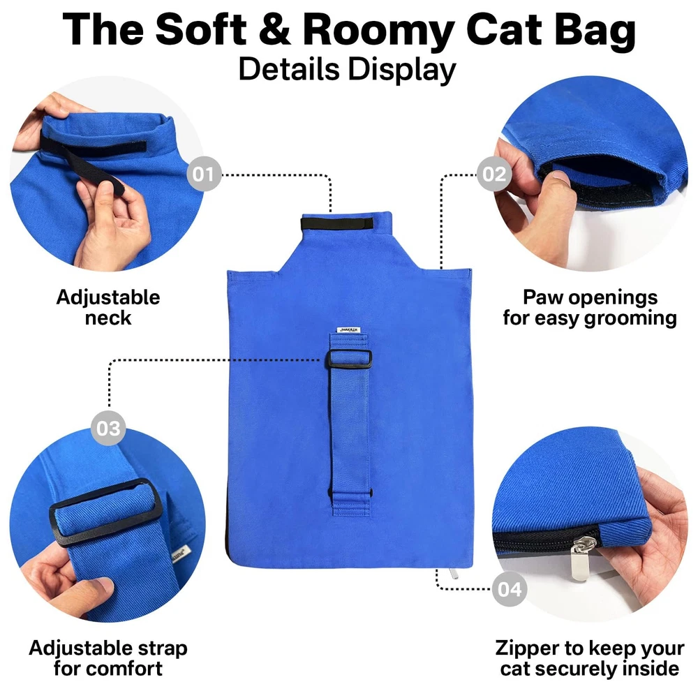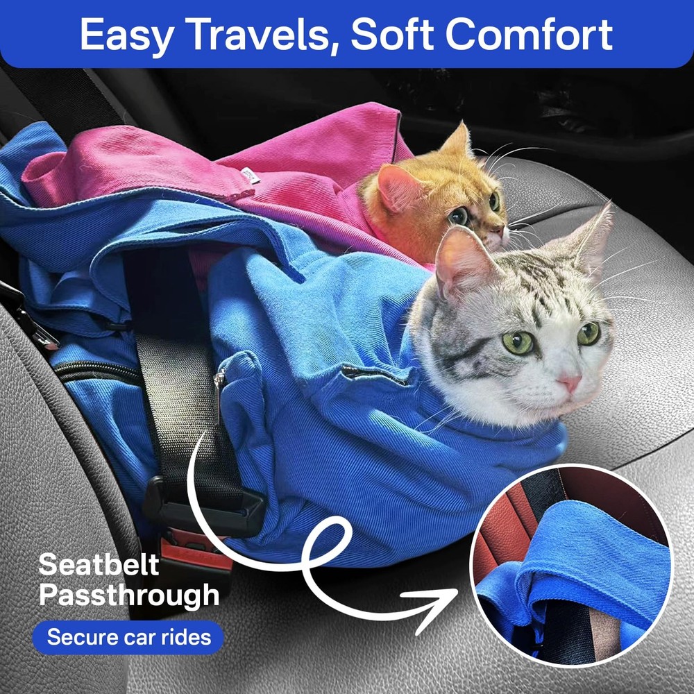 Looking for a soft cat carrier that’s safe, calming, and easy to use? Our upgraded cat carrier pouch bag for adult cat is specially designed to support medium cat carriers for cats between 10–20 lbs. Whether you're headed to the vet or just managing cat grooming at home, this cat pouch carrier provides stress-free comfort and gentle restraint—making it the ideal cat restraint for nail clipping, medication, or travel. The wide Velcro opening makes this cat carrier soft and secure while ensuring easy entry and exit, even for anxious pets. Featuring a padded, adjustable strap, this cat carrier sling keeps your hands free and your cat close. It's also a collapsible cat carrier, foldable cat carrier, and lightweight enough for everyday use. Made from breathable cotton, this soft sided cat carrier works as a kitty carrier, kitten carrier, or cat bag carrier for larger breeds under 25 lbs. Whether you use it as a car cat carrier, a cat grooming bag, or a pet carrier bag, this cute cat carrier is the perfect blend of functionality and feline comfort. Use it as a cat carrying bag for errands, a cat carrier for car rides, or a soft pet carrier for cat naps at home. With over 30 styles of cat carriers, cat carrier bags, and cat soft-sided carriers on the market, this cat bag stands out as a thoughtful solution loved by both cats and their humans 【Designed for Daily Comfort & Calm】This soft cat carrier pouch offers gentle restraint and calming support during vet visits, nail trimming, or everyday care. Designed for medium to large cats (10–20 lbs), it’s the ideal cat pouch carrier to keep your pet close, secure, and relaxed—whether at home or on the go 【Secure Fit with Easy Velcro Access】Updated with a wide Velcro neck opening, this cat carrier pouch bag for adult cat allows easy in and out while keeping your cat safely enclosed. The adjustable fit, paired with a cat carrier soft design, helps prevent escapes while ensuring comfort for travel, grooming, and medication 【Comfortable to Carry Anytime】The widened shoulder strap is soft and adjustable, helping reduce strain whether you're wearing it across your body or holding it by hand. Lightweight and flexible, this cat carrying bag makes every outing easier—for both you and your pet 【Soft, Breathable, Built to Last】Crafted from breathable, claw-resistant cotton, this soft sided cat carrier offers lasting comfort and durability. Foldable and machine washable, it's the perfect pet carrier bag for cats 10–20 lbs who love a soft, secure space 【Helping Your Cat Adjust】Some cats need time to feel safe in a new space. Try placing this kitty carrier in their favorite spot first. Our collapsible cat carrier is designed for trust, comfort, and calm—made to support both you and your cat during daily care or travel