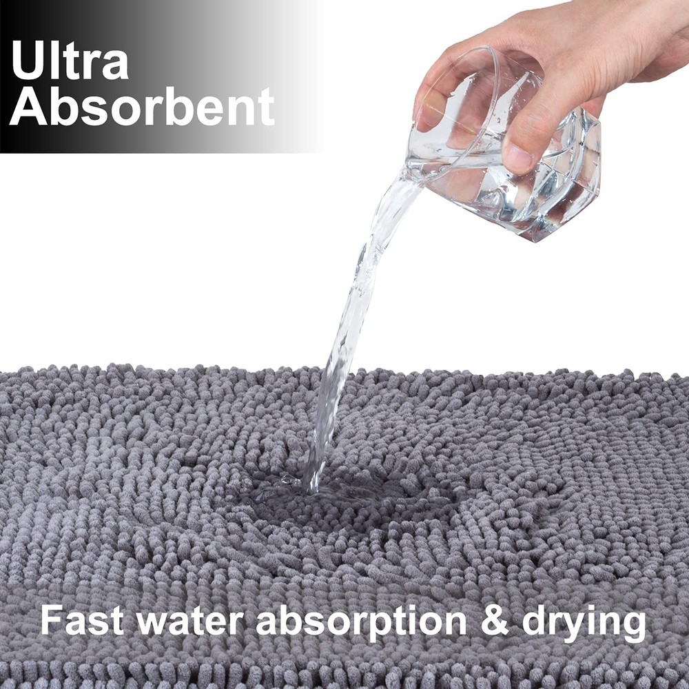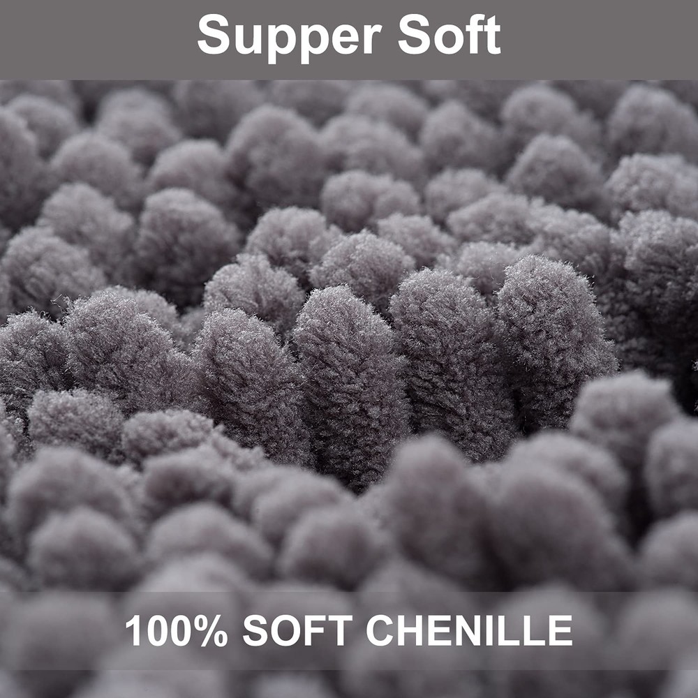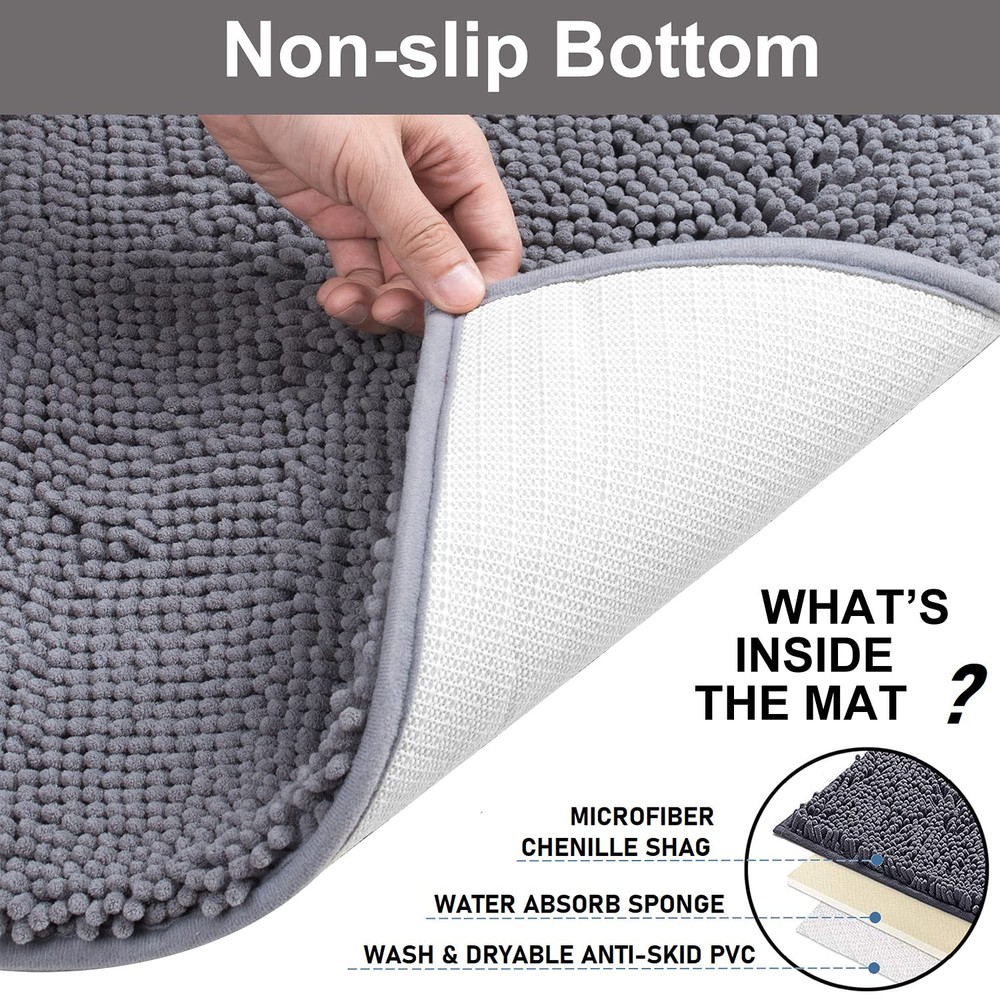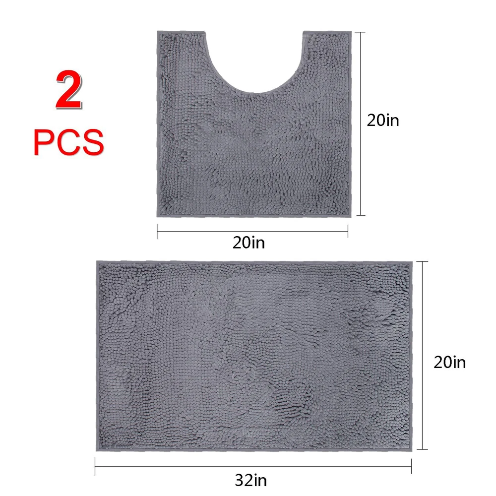 PERFECT SIZE &WIDE USE- plush shaggy Chenille rugs set includes 1 Large Bath Mat 20"x32", 1 U-Shape Contoured Toilet Mat 20"x21".Versatile Colors colors to choose, making it easy to go with any home decor. Great for bathroom, vanity, vacation home, master bathroom, bathroom, guest suite. Great gift idea for all occasions, Christmas, Wedding, Fathers Day, Mothers Day, Valentines. COMFORTABLE AND LUXURIOUS – This bath mat for bathroom is made of thousands of individual microfiber shags, which are more soft and density, cozy, fuzzy, comfortable, offers exceptional softness and comfortable to your toes and protects your feet from cold bathroom floor.You can enjoy superior comfort when you step on it.Thicker and better constructed than most other brands. ANTI-SLIP– Our Bath Mat Rug is backed with high quality PVC material of skid-resistant bottom to prevent shifting and skidding and that will hold up for years to come, unlike other rugs with the rubber backing tends to wear and peel off after a number of washes. It reliably grips the floor keeping the rugs in place. Rugs provide a secure place to stand when getting in and out of the shower or tub. Great for , teens, adults and seniors.CAUTION: Place rug on DRY &SMOOTH SURFACE only. ULTRA ABSORBENT- The mat is consist of 3 layers, the top layer is 1" long individual microfiber pile, which are made of thick Chenille fabric; the middle layer is sponge;the bottom is PVC mesh. With this high-quality construction, the bath rugs can help to absorb water in seconds. MACHINE WASHABLE & DRYABLE- Just toss them in washing machine in cold water with mild detergent. Please do not use chlorine or bleach. Tumble dry on low heat or lay to air dry. Our bath rugs color will stay nice and vibrant for years to come no matter how many times they’ll be washed and dried!The super soft material will not shrink or turn rough after the wash, keeping your bathroom rug in the same shape as the day you bought it.