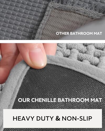 Soft Chenille Bath Mat with Rubber Backing, 5' x 3'7" Rectangular Rug, Grey