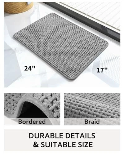 Rug Form Type: Bath Mat Item Length: 1 Back Material Type: Rubber Date First Available: November 16, 2023 Model Name: XNE-1724-GREY-NEW Item model number: XNE-1724-GREY Occasion: Doorway, Laundry Room, Bathroom, Kitchen, Bedroom Special Feature: Absorbent, Fade Resistant, Quick Dry, Non Slip, Soft Recommended Uses For Product: Bathroom Size: 5' x 3'7" (Rectangular) Item Width: 1 UPC: Does Not Apply Type: Does Not Apply Pile Height: Low Pile Is Stain Resistant: Yes Age Range Description: Adult Color: Grey Room Type: Doorway, Laundry Room, Bathroom, Kitchen, Bedroom Weave Type: Braided Is Autographed: No Product Care Instructions: Machine Wash Cartoon Character: Bath Mat Shape: Rectangular Brand: Does Not Apply Product Dimensions: 60"L x 43"W Construction Type: Machine Made Item Height: 1 Number of Pieces: 1 EAN: Does Not Apply Warranty Type: Limited Warranty or Full Warranty or Extended Warranty Pattern: Braided Material: Chenille Water Resistance Level: Not Water Resistant MPN: Does Not Apply Indoor Outdoor Usage: Indoor gtin13: Does Not Apply Theme: Pure Style: Modern Country of Origin: China Manufacturer: Does Not Apply Item Weight: 1.39 pounds