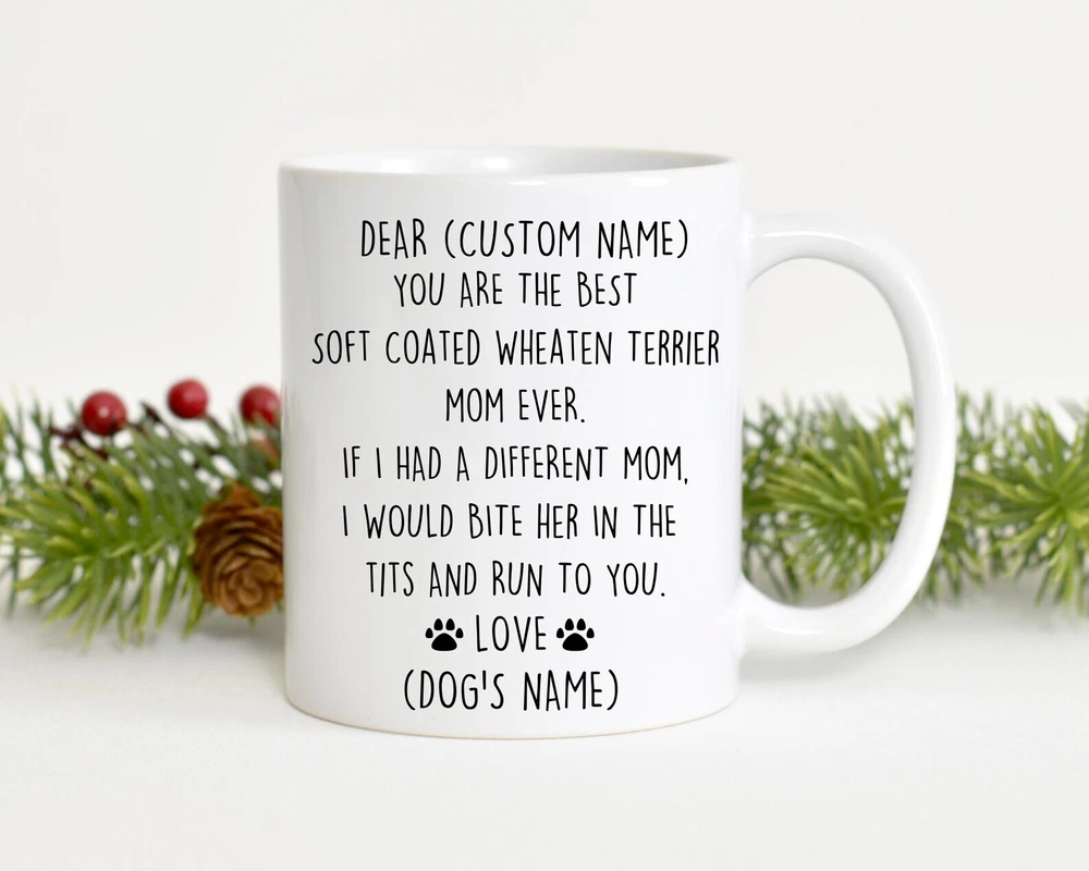 Soft Coated Wheaten Terrier Mom Birthday Gift Soft Wheaten Mom Christmas Gift Wheaten Mom Valentine Gift Funny Wheaten Mom Appreciation Product Details.. This high quality 11oz. ceramic white mug has a premium hard coat that provides crisp and vibrant color reproduction sure to last for years. Perfect for all hot & cold beverages. The highest quality printing possible is used. It will never fade no matter how many times you wash it. Material: 100% Ceramic. Print both sides. Dishwasher and Microwave Safe. High Gloss + Premium White Finish. Printed in the U.S.A. Personalized & Custom. We support personalized and custom mug to add custom, when placing an order, you can add notes to the "order note" in shipping address section. Also you can contact us directly via message. Shipping Info. Ready to ship in 1 to 2 business days, All products are made-to-order and proudly printed in the United States. Shipped by USPS and DHL, You will receive your order in 5-7 days. Replace & Refund. All products are defective during shipping broken, chipped will be replaced free of charge. You are not satisfied with the product, we will refund 100% money to you. If any other issues arise, please do not hesitate to message, we would be more than happy to assist you.
