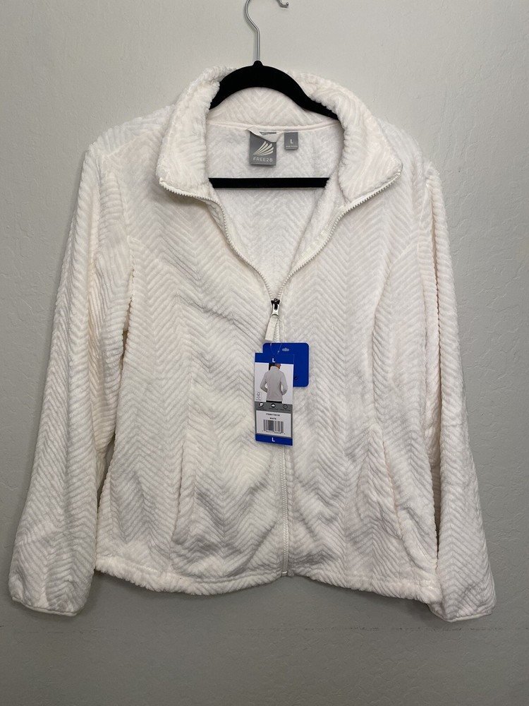 Department: Women Jacket/Coat Length: Short Sleeve Length: Long Sleeve Size Type: Regular Occasion: Business, Casual, Travel Outer Shell Material: Polyester Brand: Zip-Up Fabric Type: Fleece Color: Cream Features: All Seasons, Full Zip, Pockets, Stretch Accents: Zipper Closure: Zip Style: Basic Jacket Size: L Pattern: Solid Theme: Classic Type: Jacket