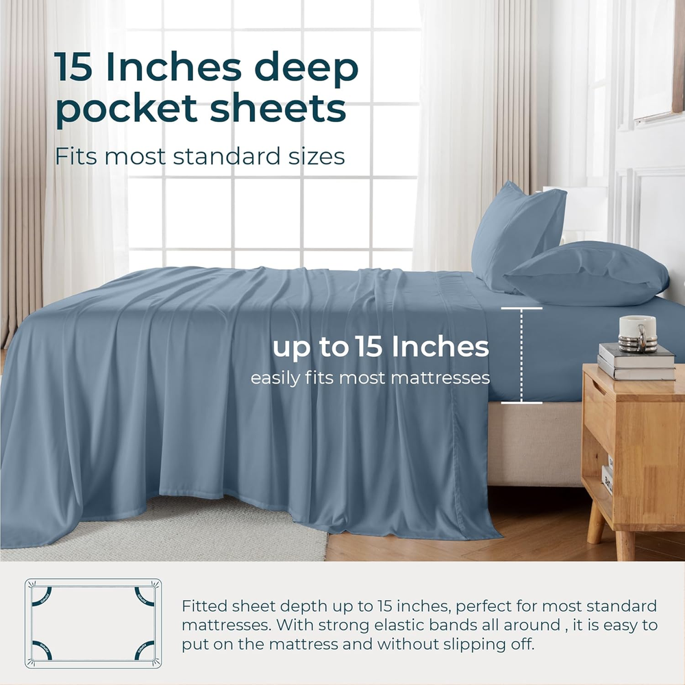 Store New Arrivals Add to Favorite View Feedback Contact Twin Sheets Sets, 100% Tanboocel® Rayon Derived from Bamboo Sheets Twin Size, Soft Cooling Twin Bed Sheets,15" Pocket Twin Sheets with Elastic Corner Straps,Moisture Wicking,Double Stitching Description Item model number Twin Style Modern Pillowcase Width 20 Inches Weave Type Sateen Pattern Solid Country of Origin China Theme Bedroom Number of Pieces 3 Unit Count 3.0 Count Pillowcase Quantity 1 Material Rayon Item Display Dimensions 9.84 x 5.91 x 3.15 inches Age Range (Description) All Ages Seasons All, Summer, Spring Included Components Pillowcase * 1, Flat Sheet * 1, Fitted Sheet * 1 Closure Type Envelope Item dimensions L x W x H 7 x 5.9 x 9.84 inches Item Weight 3.05 pounds Pillowcase Length 30 Inches Fitted Sheet Pocket Depth 15 Inches Special Feature Fully Elasticized, Hypoallergenic, Moisture Wicking, Reversible and envelope closure pillowc cases, fitted sheet with elastic corner straps, cooling for hot sleepers, Up to 15" deep pocket. Super luxury soft sheets set., Breathable Color 03 Blue Thread Count 300 Pillowcase Closure Depth 8 Inches Pillowcase Closure Width 8 Inches Product Dimensions 7 x 5.9 x 9.84 inches Product Care Instructions Hand Wash Only Size Twin 100% Bamboo Rayon Sheets with Premium Breathability: Gokotta 100% bamboo rayon sheets twin size bed set, crafted from Tanboocel fibers and sourced from Canopy-certified factories, deliver outstanding softness and breathability for a cool, dry, and restful sleep. The tested sample demonstrated high breathability (recorded 73.9 CFM). For more details, please refer to the report on this page. Please note that there may be slight differences between the tested sample and the actual product Pilling Resistance for Lasting Comfort and Durability: Gokotta twin size bed sheets are crafted using a premium sateen weave technique, which not only gives them a silky, smooth texture but also helps to reduce surface pilling. The fabric’s smooth surface may also help reduce static, which can contribute to making the sheets pet hair resistant, helping to prevent some pet hair buildup. Sample testing has shown notable resistance to pilling, reflecting our commitment to long-lasting durability and comfort. For more details, please refer to the report on this page Secure Fit with Latex-Free Elastic Corner Straps: Gokotta fitted sheets feature elastic corner straps and an all-around elastic band to ensure a snug, slip-free fit for uninterrupted sleep. The 15-inch deep pocket easily fits most mattresses, and the strong elastic makes tucking quick and effortless. Crafted with latex-free materials, these sheets are a safer choice for every member of your family Certified Safe Bedding for Your Peace of Mind: Gokotta bed sheets twin size set are OEKO-TEX STANDARD 100 certified (Certification Code: SH025 252721), meaning these cooling sheets meet rigorous testing for harmful substances to ensure they are safe on your skin. This globally recognized certification guarantees that our bedding is both skin-friendly and environmentally conscious, providing a healthier and more restful sleep experience for you and your loved ones 300 TC - Perfect Comfort at the Right Value: Gokotta 300 thread count bamboo rayon sheets twin size are thoughtfully designed to deliver the ideal balance of softness, durability, and affordability. Offering premium comfort for restful nights and long-lasting quality for everyday use, these bed sheets are the smart choice for those seeking exceptional value without compromise. These sheets maintain their vibrant color and luxurious texture over time, even with regular washing, ensuring they are unlikely to fade or stiffen, making them perfect for long-term use and lasting comfort Eco-Conscious Packaging with FSC Certification: Gokotta bamboo rayon sheets are packaged in FSC-certified kraft paper boxes crafted from responsibly managed forests, supporting global conservation efforts. Designed to minimize plastic use, this thoughtfully created packaging combines practicality with refined details, making it suitable for any setting that values quality and sustainability. Choose Gokotta for premium comfort and a step towards a more sustainable future Reliable Customer Care Inspired by Thai Hospitality: Gokotta customer care team reflects Thailand’s renowned culture of hospitality, offering prompt and attentive support to help with your questions or concerns. We are committed to ensuring a smooth and pleasant shopping experience for all customers. Imported Product Description Crafted from 100% genuine rayon made from bamboo, without any mixed materials. 1 BREATHABLE SHEETS 2 HIGH THREAD COUNT 3 SHEETS WITH CORNER STRAPS 4 ULTRA SOFT SHEETS 5 COLORS GOKOTTA PRODUCT COLLECTION Add to Cart Add to Cart Add to Cart Add to Cart Add to Cart Add to Cart Customer Reviews 4.5 out of 5 stars 2,361 4.5 out of 5 stars 210 4.6 out of 5 stars 142 4.4 out of 5 stars 52 4.5 out of 5 stars 571 4.4 out of 5 stars 1,134 4.5 out of 5 stars 127 Price $105.00 $ 105 . 00 $39.99 $ 39 . 99 $120.00 $ 120 . 00 $65.00 $ 65 . 00 $73.00 $ 73 . 00 $27.00 $ 27 . 00 — Cooling Premium Coolness Premium Soft Enhanced Coolness Enhanced Coolness Premium Coolness Premium Coolness Premium Coolness Softness Ultra Softness Ultra Softness Ultra Softness Ultra Softness Ultra Softness Ultra Softness Ultra Softness Deep Pockets 16" Deep Pocket 16" Deep Pocket 18" -24" Deep Pocket 18" - 24" Extra Deep Pocket 16" Deep Pocket 16" Deep Pocket 16" Deep Pocket Material 100% Rayon Made from Bamboo 100% Double Brushed Microfiber 100% Rayon Made from Bamboo 100% Rayon Made from Bamboo 100% Rayon Made from Bamboo 100% Rayon Made from Bamboo 100% Rayon Made from Bamboo Certified OEKO-TEX Standard 100 No OEKO-TEX Standard 100 OEKO-TEX Standard 100 OEKO-TEX Standard 100 OEKO-TEX Standard 100 OEKO-TEX Standard 100 GSM 125 175 150 150 125 125 125 Thread Count 300 300 300 300 300 300 300 Elastic corner straps ? ✔ ✔ ✔ ✔ ✔ ✔