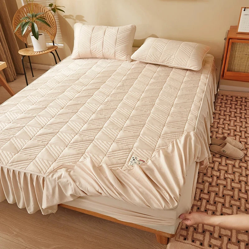 Absolutely love this mattress cover! It fits my bed perfectly, stays in place all night, and the material is so soft yet durable. The elastic edges are strong and the skirt gives it a clean, finished look. Just a heads up, pillowcases are sold separately. Highly recommend!