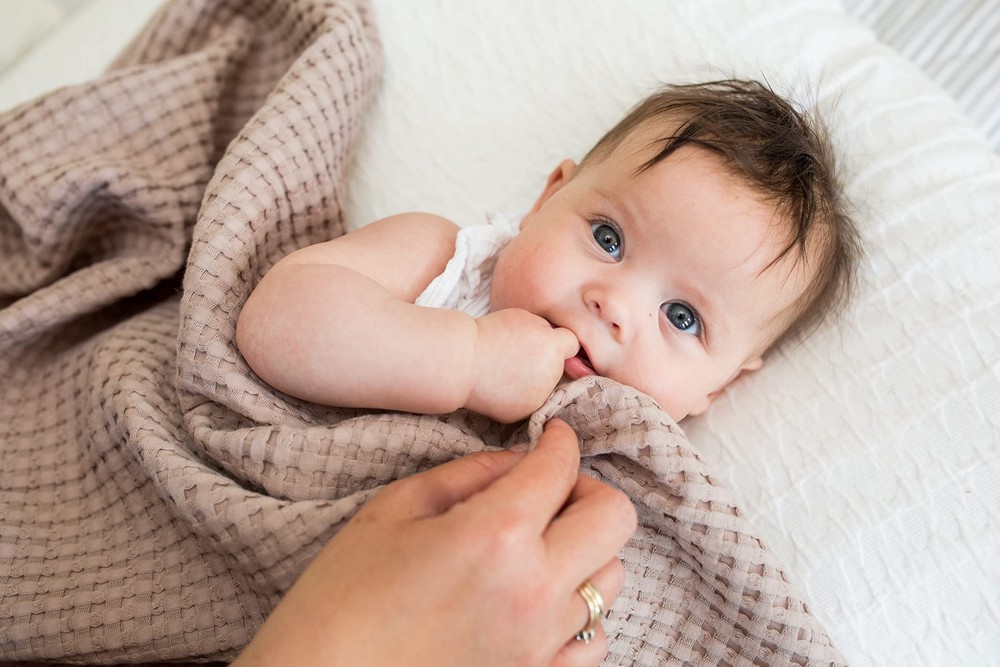 Soft Cotton Waffle Weave Baby Blanket in Sand Color